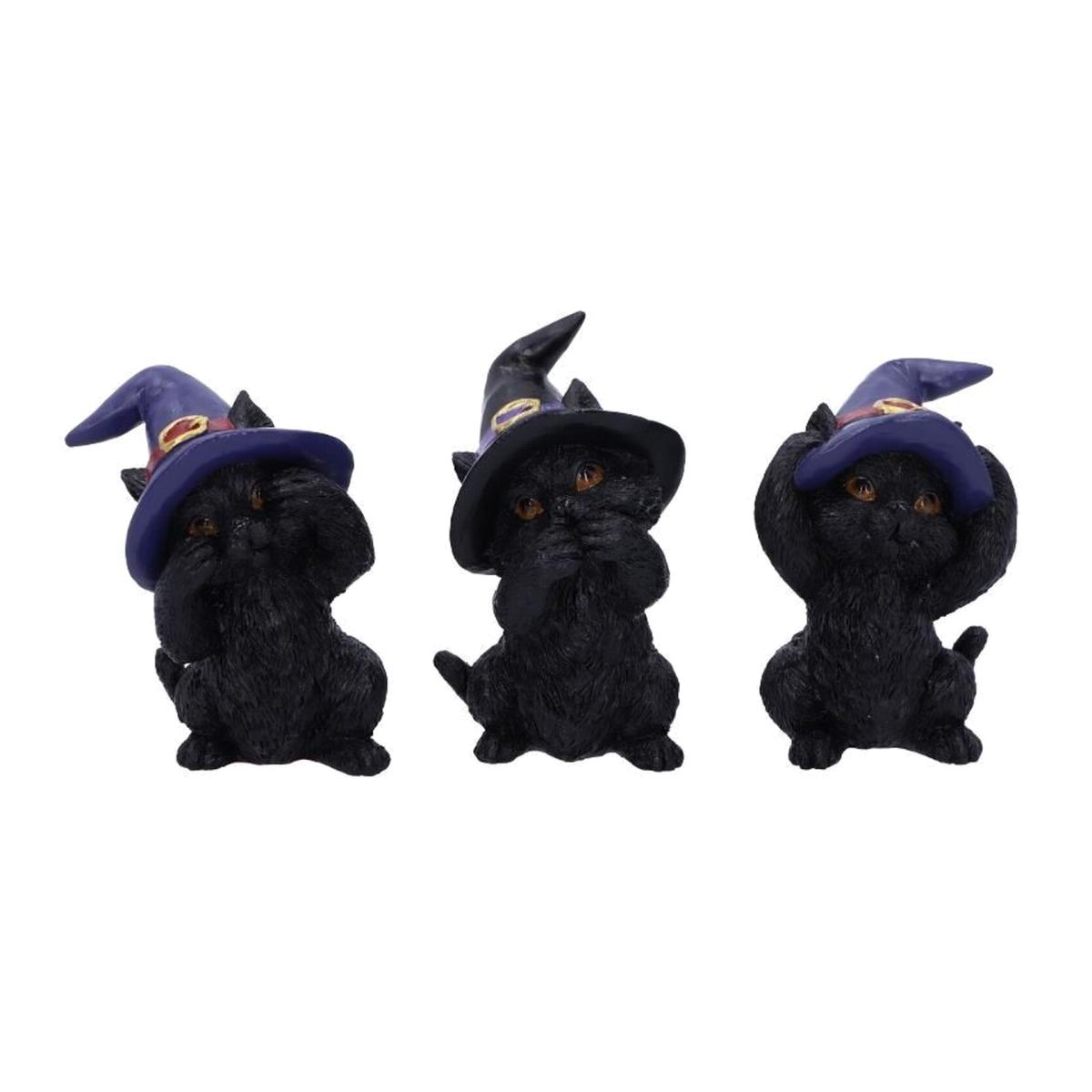 I love these little three wise cats because they add a playful yet sophisticated touch to any space. Their compact size makes them perfect for on a bookshelf, mantlepiece, or side table without overwhelming the area. They work particularly well in eclectic, whimsical, or themed interiors, especially around Halloween or autumn displays. For styling tips, try grouping them with other quirky accessories or placing them amidst seasonal foliage to enhance their charm. Their understated black finish allows them to blend seamlessly into both modern and traditional schemes, making them versatile enough to suit a variety of settings while providing a fun conversation starter.