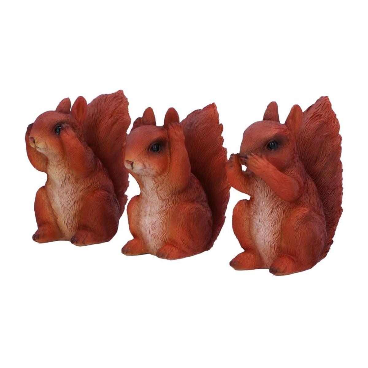 Behold the charm of our Three Wise Squirrels, a delightful creation from Nemesis Now. These three adorable red squirrels capture the essence of 'See No Evil, Hear No Evil, Speak No Evil,' each embodying one aspect of the maxim. Crafted from the finest resin and meticulously hand-painted, these figurines celebrate the natural world with intricate detail and lifelike expressions. Perfect for animal lovers, this set stands as a testament to the beauty and vulnerability of wildlife. Add a touch of woodland whimsy to your collection with these endearing figurines, a thoughtful gift or a captivating addition to any nature enthusiast's treasure trove.