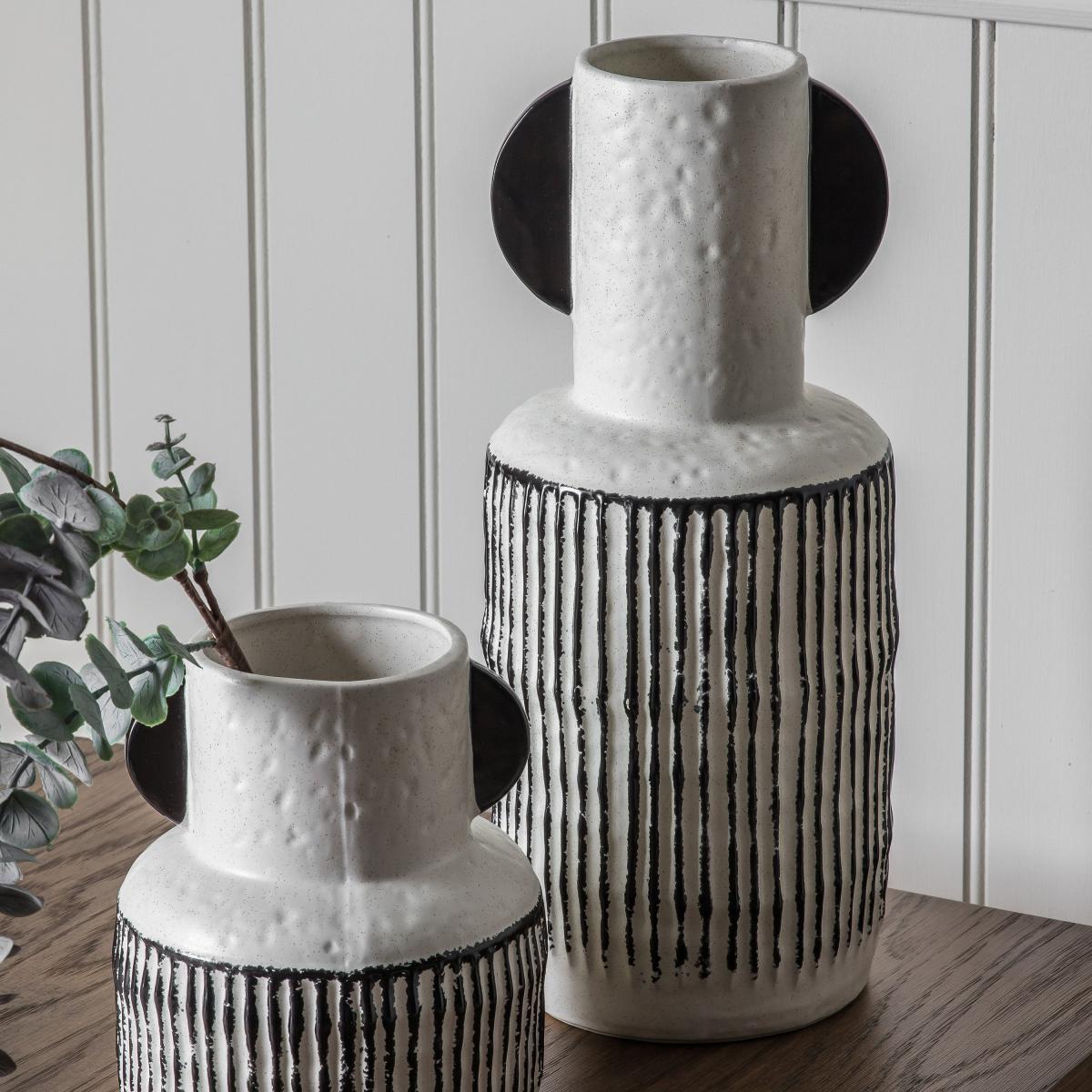 The Throwley vase large is a fantastic statement piece with its bold black and white contrast and textured surface. I love how its sculptural form adds visual interest without overwhelming a space. It works particularly well in minimalist or Scandinavian interiors, where its geometric simplicity complements clean lines and neutral palettes. For styling, I recommend pairing it with dried botanicals or simple greenery to enhance its modern aesthetic. It’s versatile enough to sit on a console table, sideboard, or as a focal point in a living room corner, making it a practical yet stylish addition to contemporary interiors.