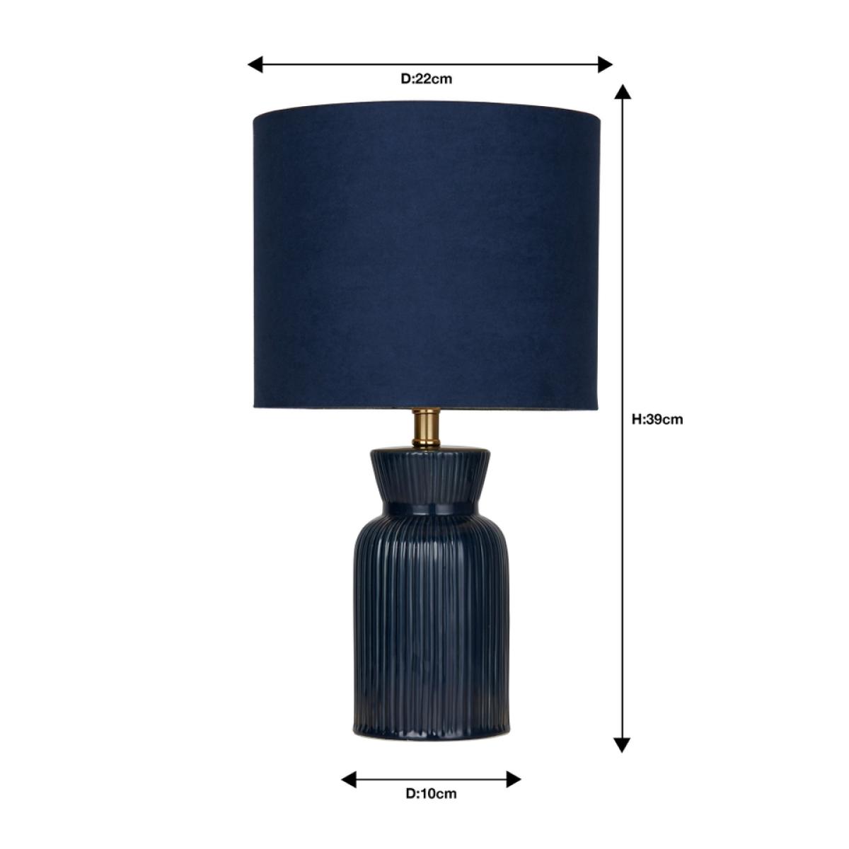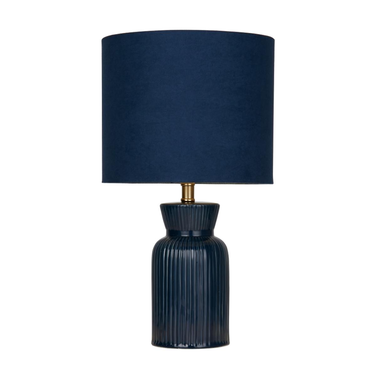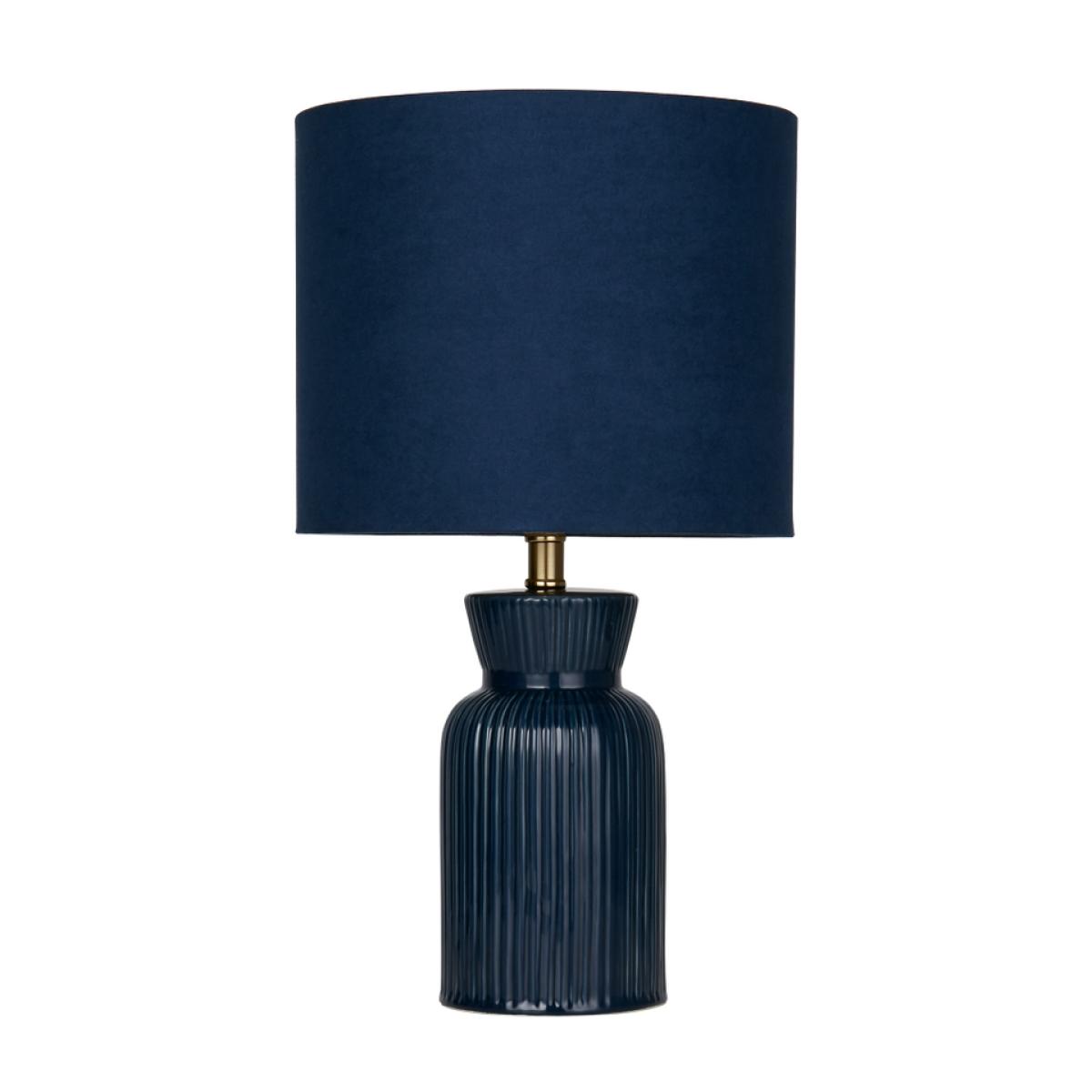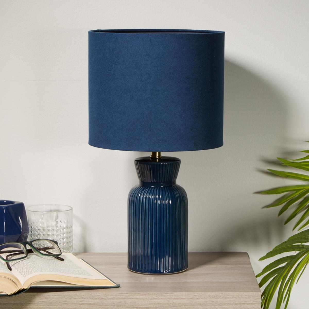 The Tia table lamp is suitable for both modern and more traditional homes, and is a simple way to change the look of a room, adding a pop of colour. The navy blue colourway will add a luxurious touch to any living room or bedroom, and the ceramic base and matching suedette fabric shade adds a homely touch and some texture.