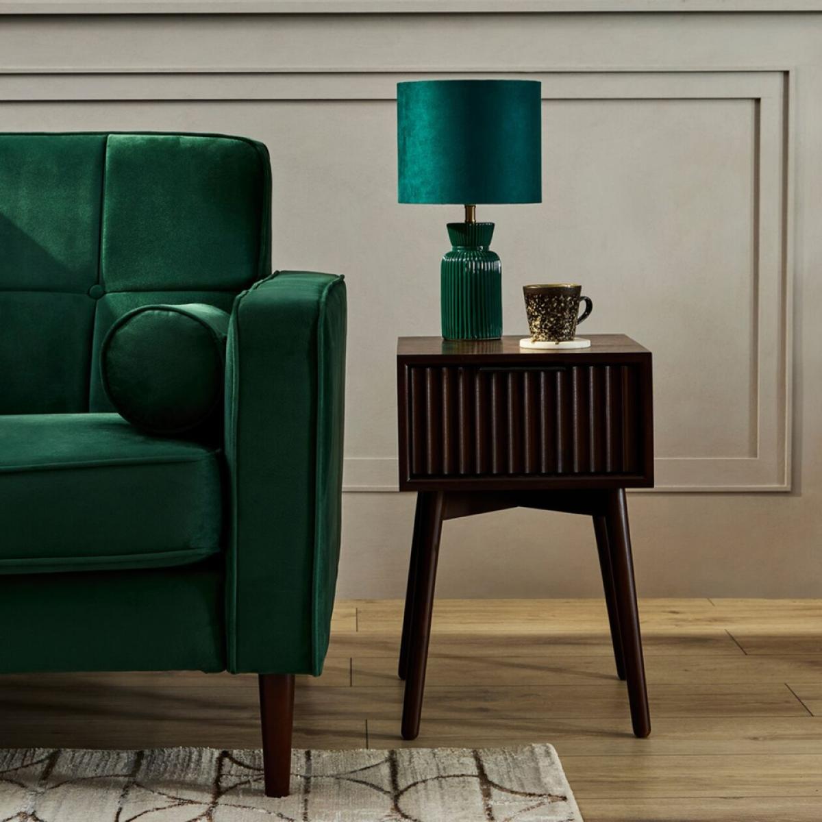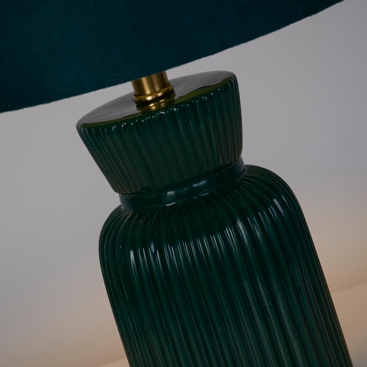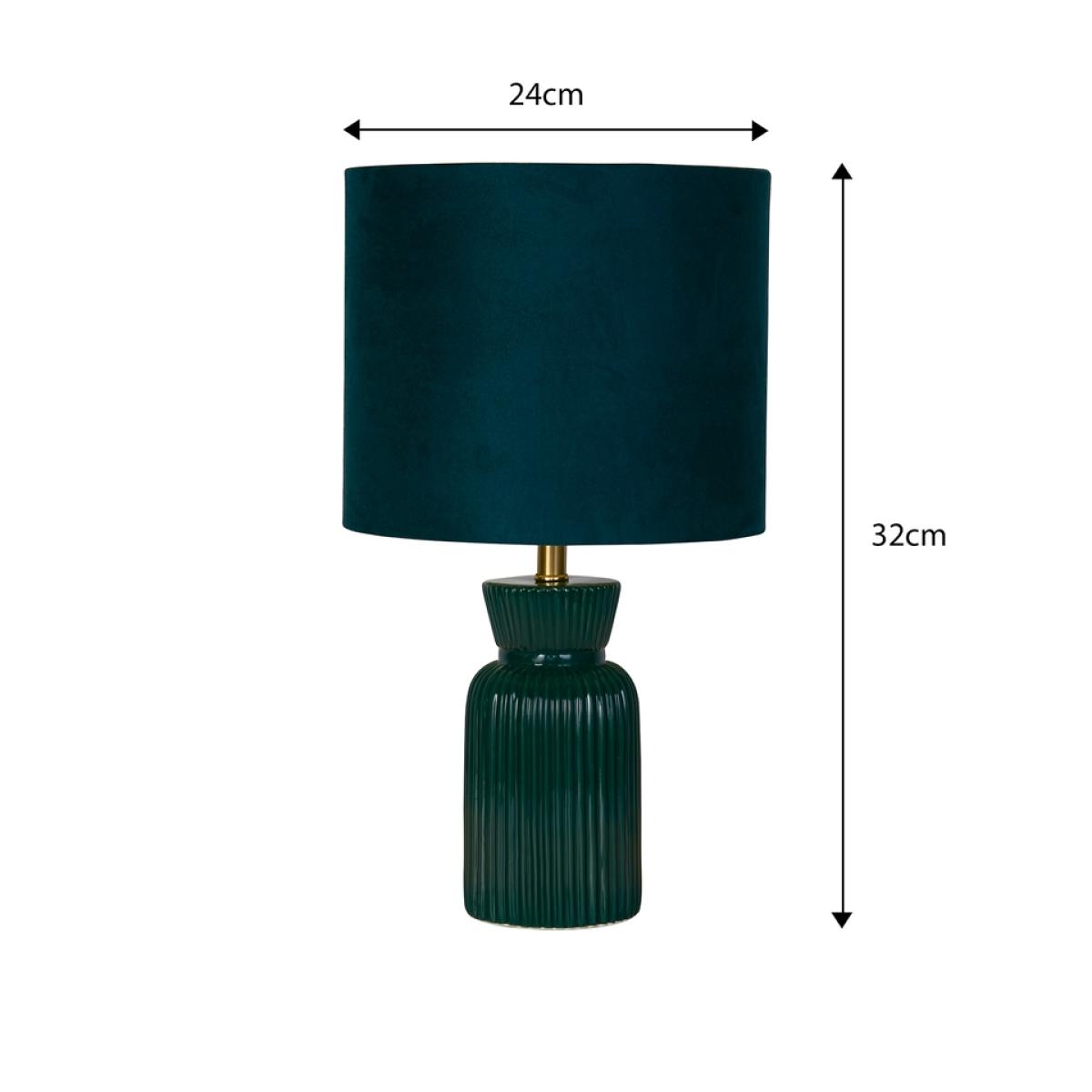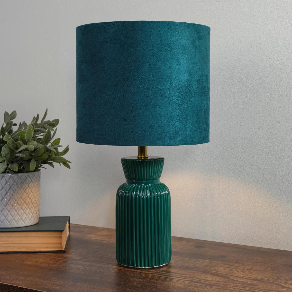 Bathe your space in a warm glow with this stunning emerald ceramic table lamp. The rich, jewel-toned base adds a touch of luxury to any room while the soft suede effect shade provides a beautiful contrast and a warm, inviting ambiance. This lamp's classic design complements a variety of décor styles, from modern to traditional.