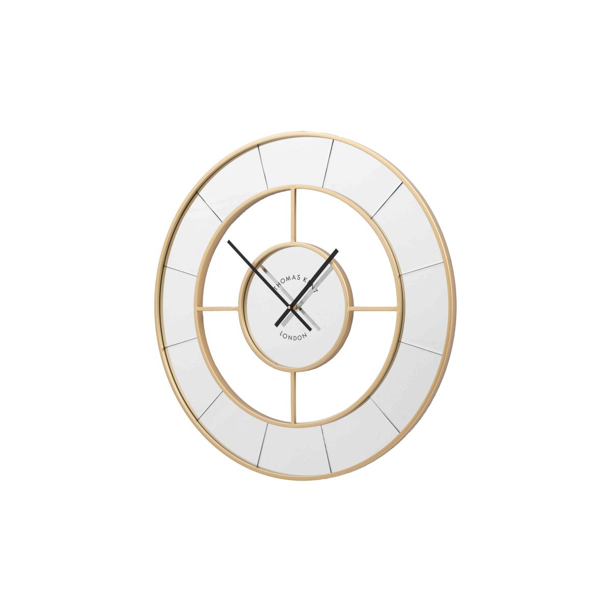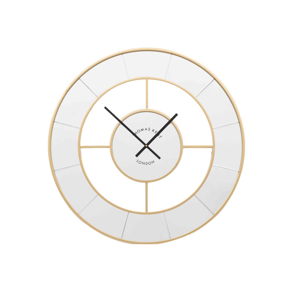 A gorgeous accessory that helps turn your home into a personal haven. This classy, modern wall clock dazzles with its glam mirrored frame and sleek gold accents. Why you'll love it Exquisite mirrored wall clock. Easy-to-read numerals for straightforward timekeeping. Modern design with echoes of classic practicality. Large mirrored frame makes this clock a standout item. Hand-finished with care. Exclusive to Furniture Village. What you need to know For indoor use only. Batteries should be changed twice a year, to avoid leakage of dead batteries inside. Dimensions Height: 80 cm (32 in). Depth: 2 cm (1 in). Width: 80 cm (32 in).