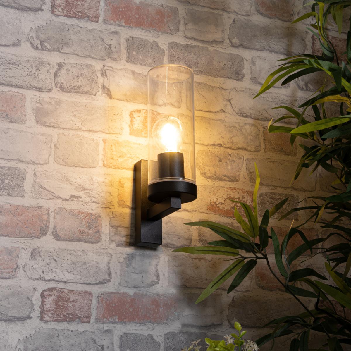 I love this wall light for its sleek, minimalist design and versatility. Its modern black finish makes it an ideal choice for contemporary exteriors, while the clear glass shade ensures maximum light output, perfect for illuminating pathways, patios, or entryways. It works particularly well in urban or industrial-style outdoor spaces, but can also complement more pared-back, modern gardens. Practical styling tips include mounting it at an eye level or slightly higher to create a welcoming glow without glare, and pairing it with other black or matte-finished accessories for a cohesive look. The simplicity of the design also means it won’t compete with more decorative elements, making it a subtly elegant addition to any exterior scheme.