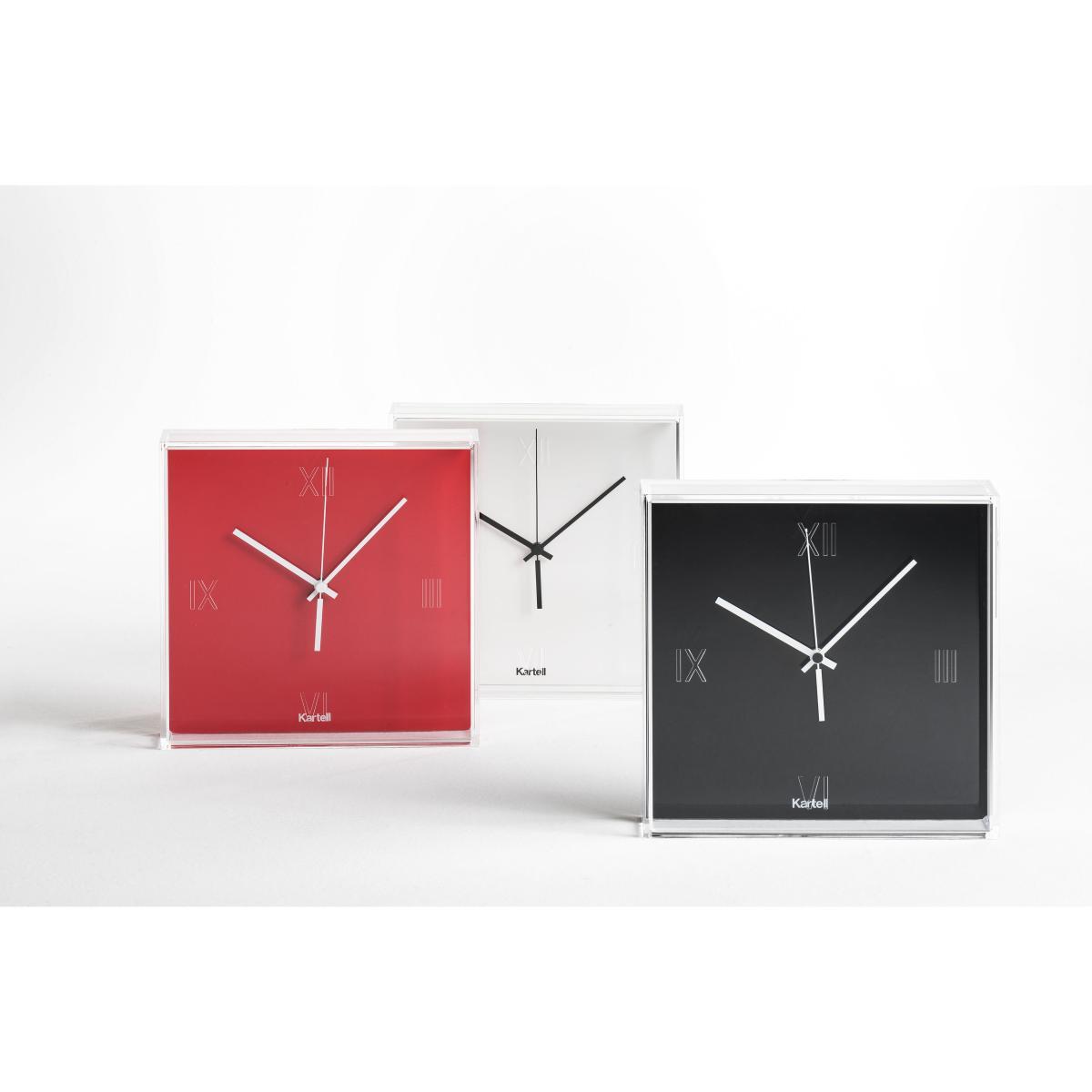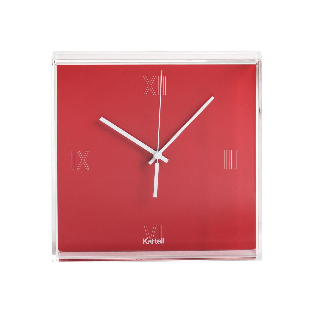 Kartell is counting the hours and presents a a transparent wall clock featuring two thin coloured hands for a chromatic synthesis transforming time into an aesthetic experience. The impressive thicknesses ofthis clock create a play of lights and reflections. The clock reminiscents of ashtrays from the 50s. There is a choice of many different colours for the clock face. The Roman numerals of the hours are engraved on the surfaces.