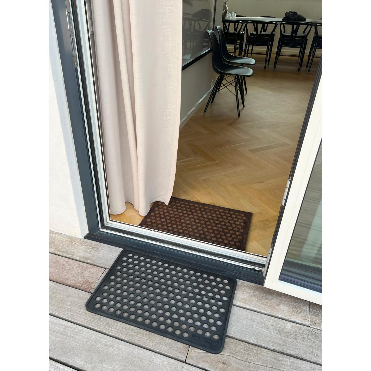 Dot rubber doormat from Tica Copenhagen is a versatile and reliable solution for keeping dirt and moisture out of your home. Made from durable rubber, with 60% recycled material, this doormat offers a stable and non-slip surface that stays securely in place on the floor. Whether it's indoors or outdoors, you can rely on this hard-wearing doormat to protect your floor and welcome visitors in style.