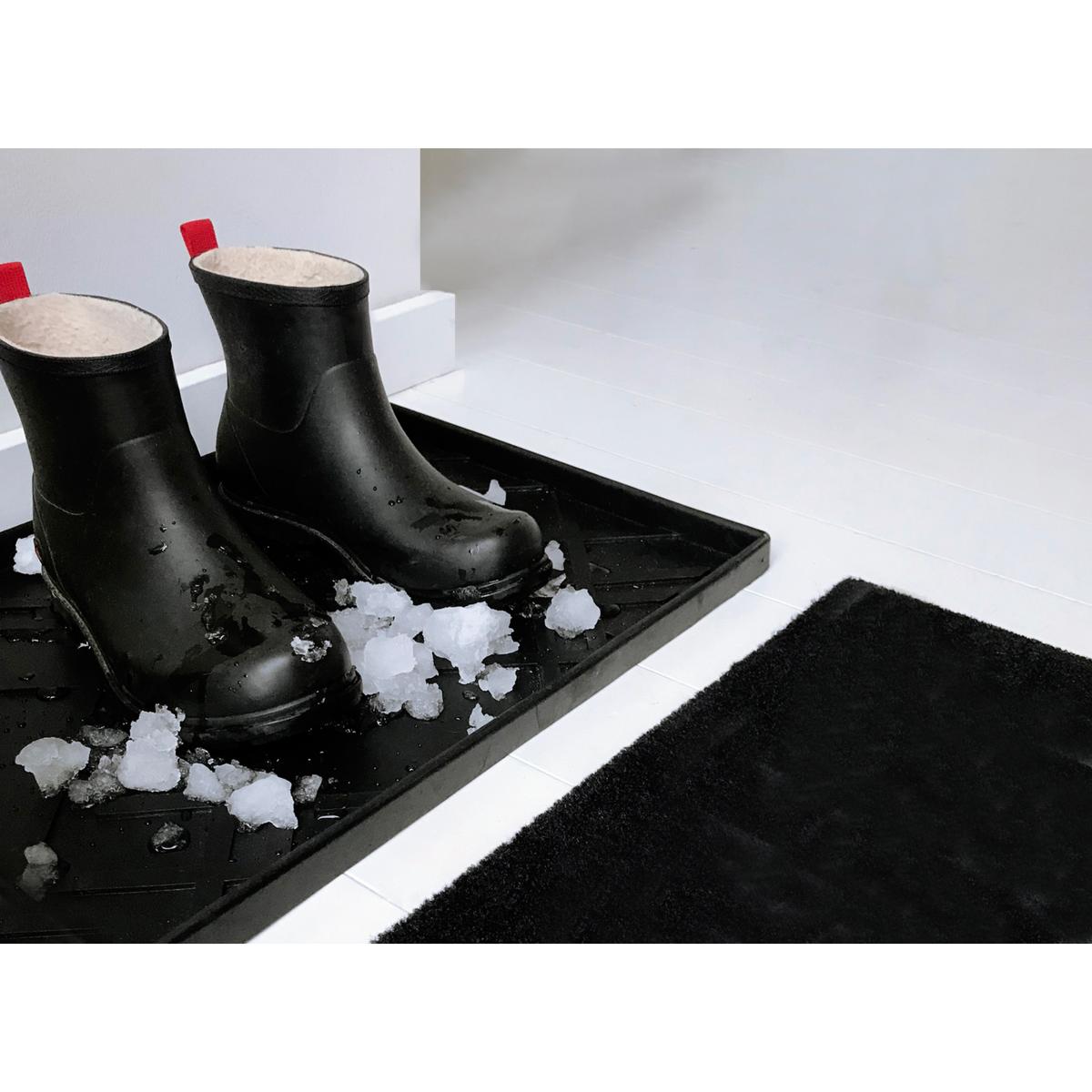 I’m a fan of the Lines shoe tray for its understated grid pattern and matt black finish - it slips effortlessly into modern, Scandinavian or industrial-style hallways without drawing too much attention. At 38×48 cm it’s a neat medium size, big enough for a couple of pairs yet slim enough to tuck under a bench. Styling tip: pair it with a slimline shoe bench or floating shelf above, so footwear stays off the floor and mud or water is contained. The slightly raised lip and non-slip surface make cleanup easy - simply wipe down after wet weather - and the neutral colour works well on both tiled and wooden floors.