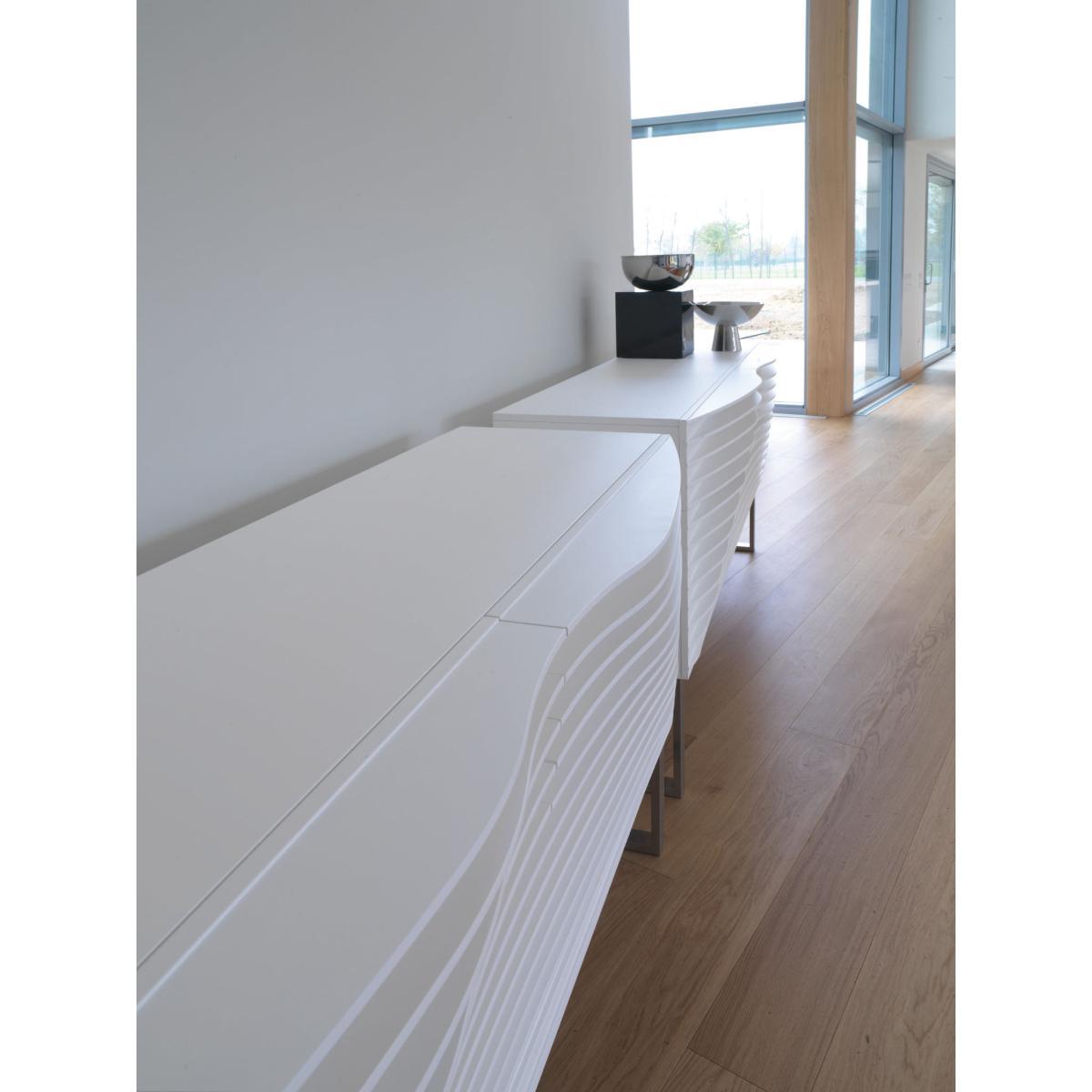 The collaboration between Horm and Karim Rashid provides four new cupboards of great aesthetic quality and innovation. A new challenge for Horm on a new and successful project. The design of the wave of thin slats creates an effect of great quality and innovation. The possibility to have a flap front or two deep drawers in the lower part of the cupboard allows different uses for different situations. Structure and front are available in our lacquered colours. The drawers have aluminium runners and are fully extendable. The product is delivered already assembled.