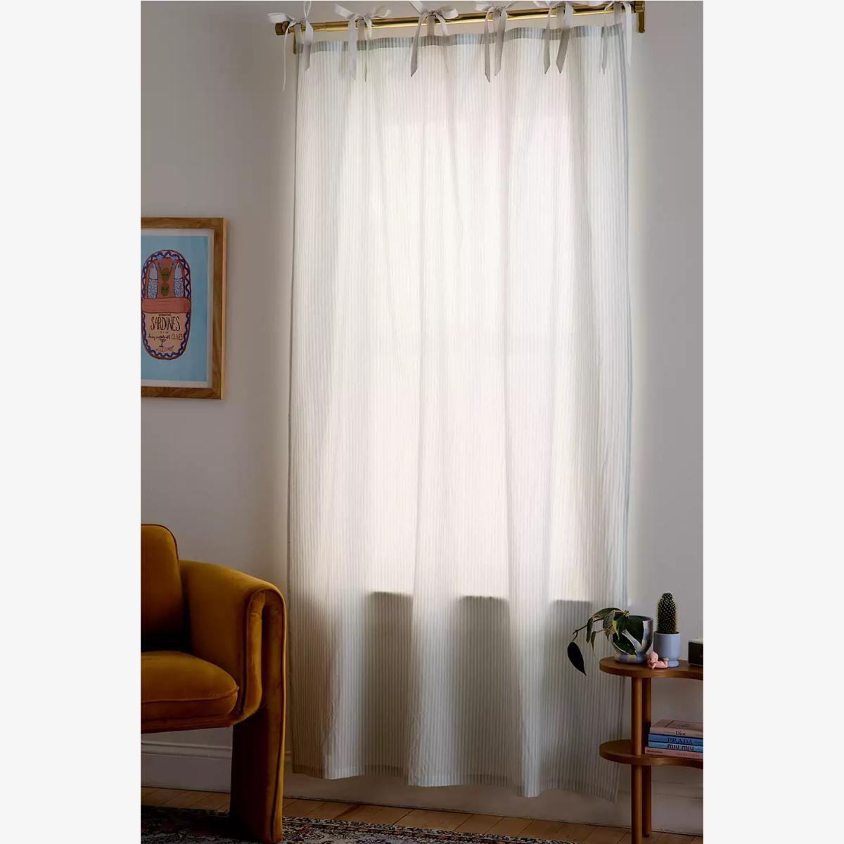 This striped window panel curtain will add an elegant touch to your space. Crafted from sheer and lightweight cotton fabric, it gently lets light through. Complete with tied loops to simply hang from a pole. **Content + Care** \- 100% Cotton \- Cold machine wash **Size** \- 132 x 213cm