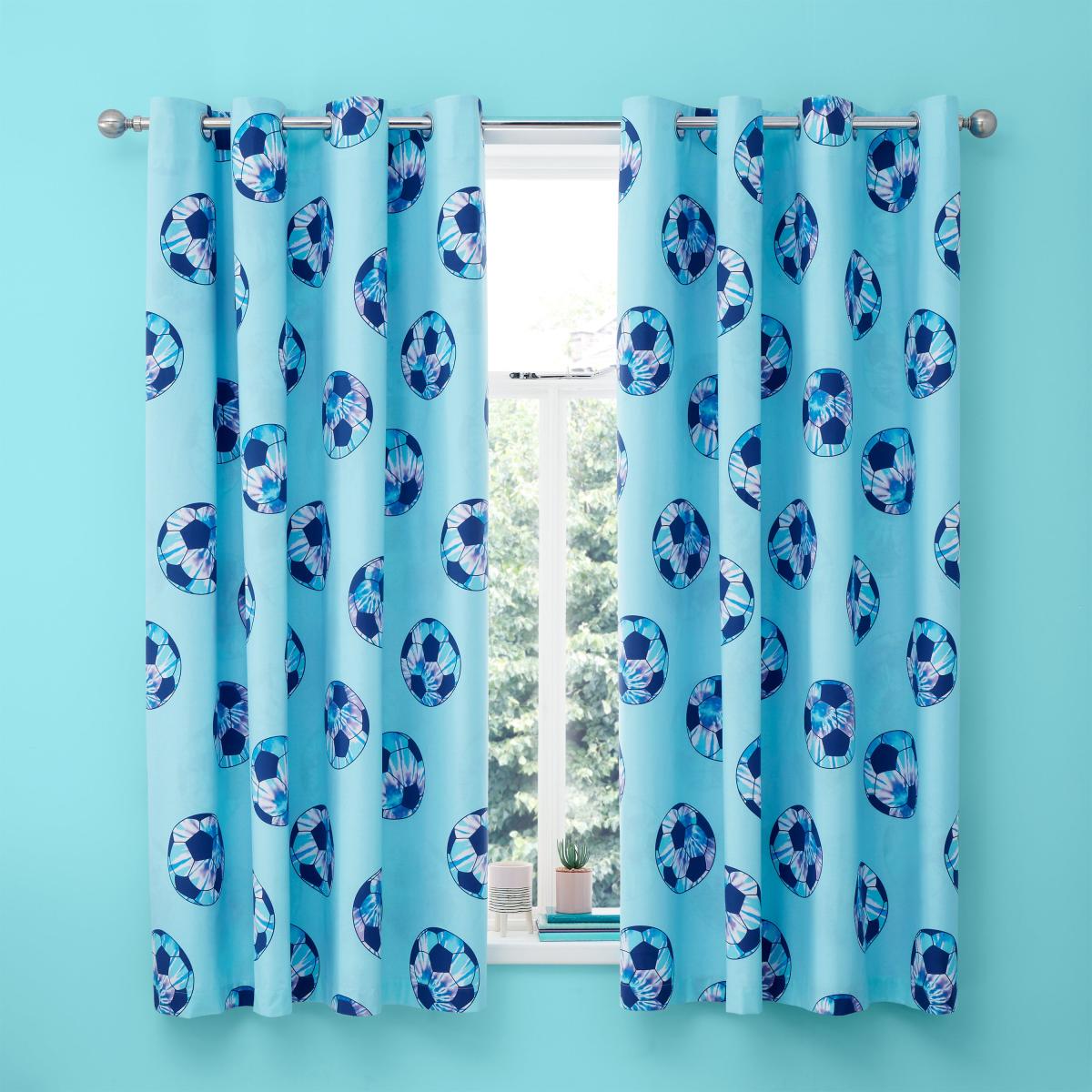 * Fully lined* Eyelet style header* Tie Dye Football print* Coordinating bedding items available to purchase separately The Catherine Lansfield Tie Dye Football Purple Eyelet Curtains create a vibrant space for football lovers with their striking tie-dye pattern and motivational quotes. The eyelet header makes installation simple, and the fully lined design controls light and adds privacy. This collection is verified by OEKO-TEX and independently tested for harmful substances as well as manufactured using sustainable processes under socially responsible working conditions.