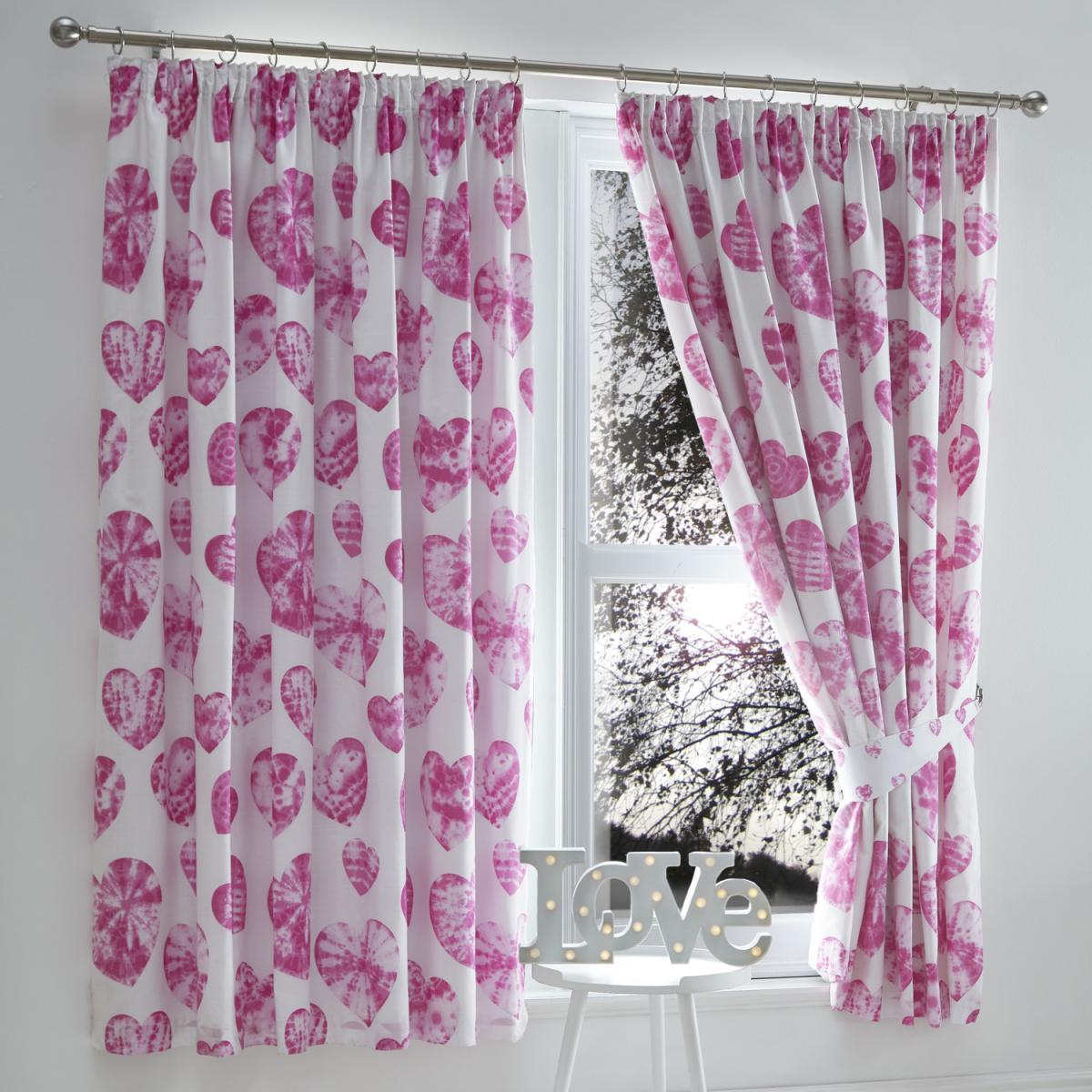 Tie Dye Hearts Pencil Pleat Lined Curtains - Pink / 72cm