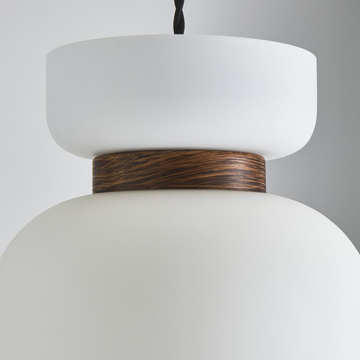Featuring the Tien Easy Fit Pendant, beautifully designed with a stunning matt opal real glass shade and a walnut wood effect detail in the centre. This easy fit pendant will instantly add a modern and contemporary feel to your home décor. Coordinate your home with matching family items from the Tien range.