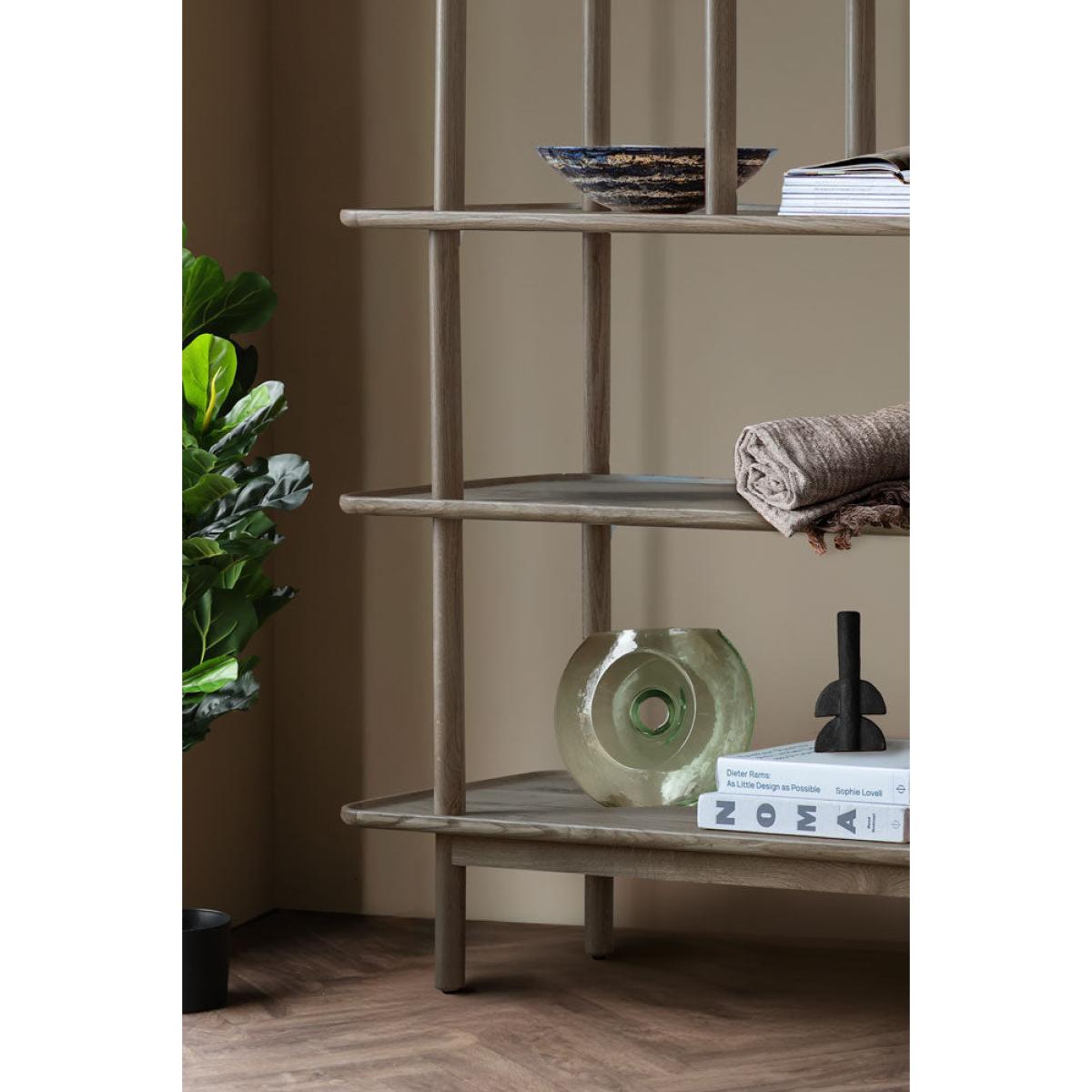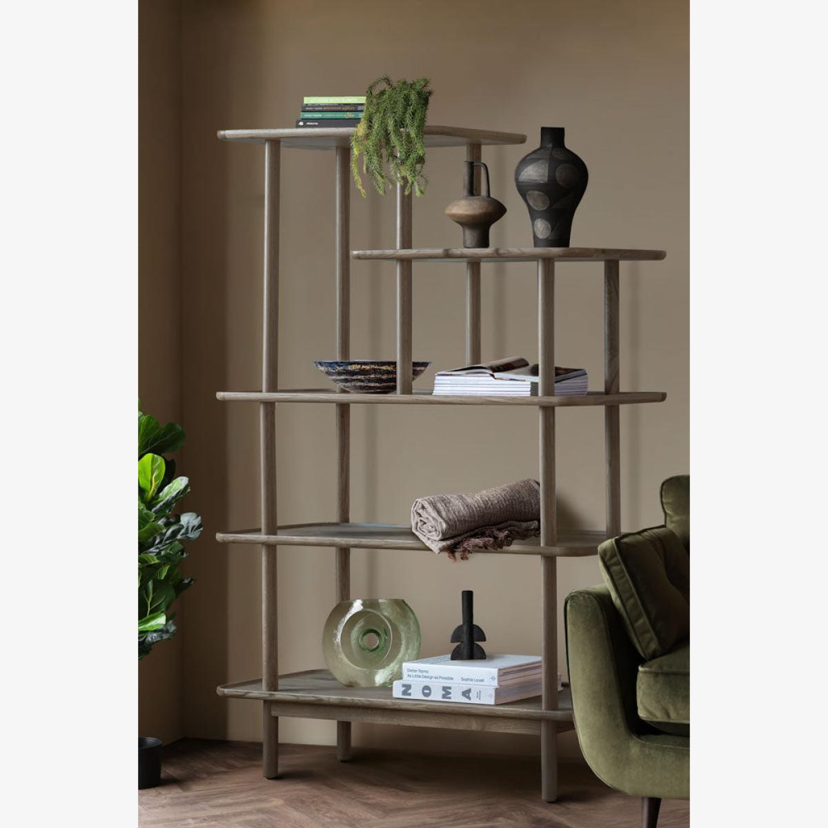 <!--td --> Elevate your home with this effortlessly cool Tiered Oak Display Cabinet In Grey. With its perfectly imperfect asymmetric design, this oak display unit is modern artistry at its best. These grey shelves showcase a soft grey tone that adds a fresh, stylish vibe, while the wood texture brings a rustic, natural charm to your home that feels warm and inviting. Made to boast your beautiful personality, the staggered tiers create endless opportunities to get creative with your décor. Whether it's plants, a mix of books or quirky trinkets, this grey display cabinet makes absolutely everything look seamlessly curated. Versatile enough for any room, this grey shelving is a statement piece, blending modern style with a touch of laid-back, boho charm. Functional and chic, this is storage, reimagined! - Tiered Oak Display Cabinet In Grey- Measures:W110cm x D38cm x H160cm - Distance between shelves (bottom to top): 36cm / 32.8cm / 32.8cm / 28cm - Shelves non-adjustable- Material:Solid Oak- Full Assembly required - Safety Advice: Please ensure the unit is attached securely to the wall to prevent toppling (anti-topple kit included)
