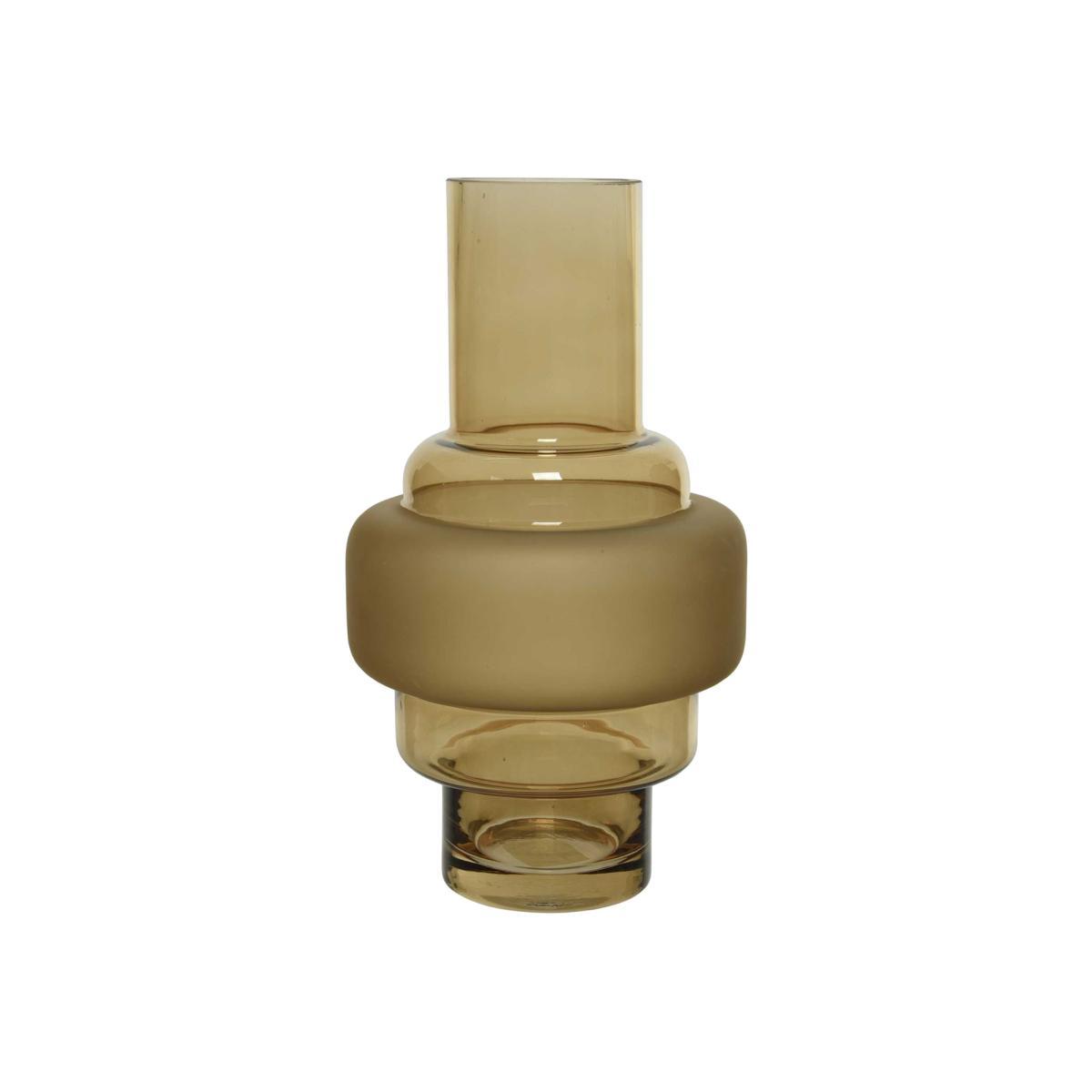 I love this little vase for its sculptural shape and versatile design. It works brilliantly in modern or minimalist interiors, where its layered glass form adds visual interest without being overpowering. Practical styling tips include pairing it with simple seasonal blooms or dried grasses for a pop of colour and texture. It also has enough presence to stand on its own as a statement piece on shelves, coffee tables, or sideboards. Its transparent, warm-toned glass means it complements a range of colour schemes and can easily be integrated into various settings - from contemporary to more eclectic spaces.