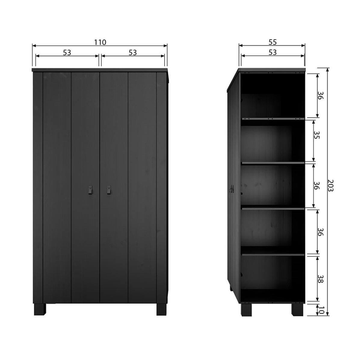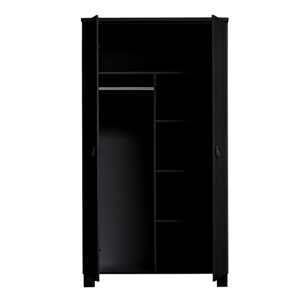 No more clothes scattered around the bedroom when you've got the Ties Wardrobe from Woood to keep them neatly stored in. Manufactured from pine and finished in black or white with leather handles, this will be one sleek addition to your home. One side featuring hanging space and the other having three shelving compartments, everything will have its place. The shelf above is perfect for spare cushions or blankets! No matter your interior style, or amount of clothing, this beauty will be happy to help.