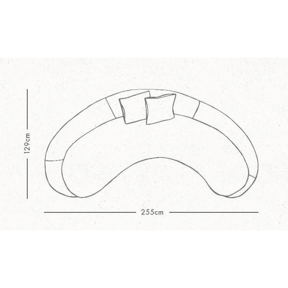 Seating does not get more luxurious than our Tiffany curved sofa. Promising to take centre stage in any interior space, this dramatic sweeping sofa has a vintage appeal, reminiscent of elegant 1940’s Italian design. Handcrafted in London, the Tiffany sits upon brushed gold tapered legs and includes two feather filled scatter cushions. Available in a range of sumptuous fabrics, you can tailor your Tiffany sofa to perfectly complement your room. Pictured: right hand facing sofa in Chalk Bouclé and Blue Savoy Stain Guarded Velvet. Handmade in 8-12 weeks and then delivered usually within 10 working days.