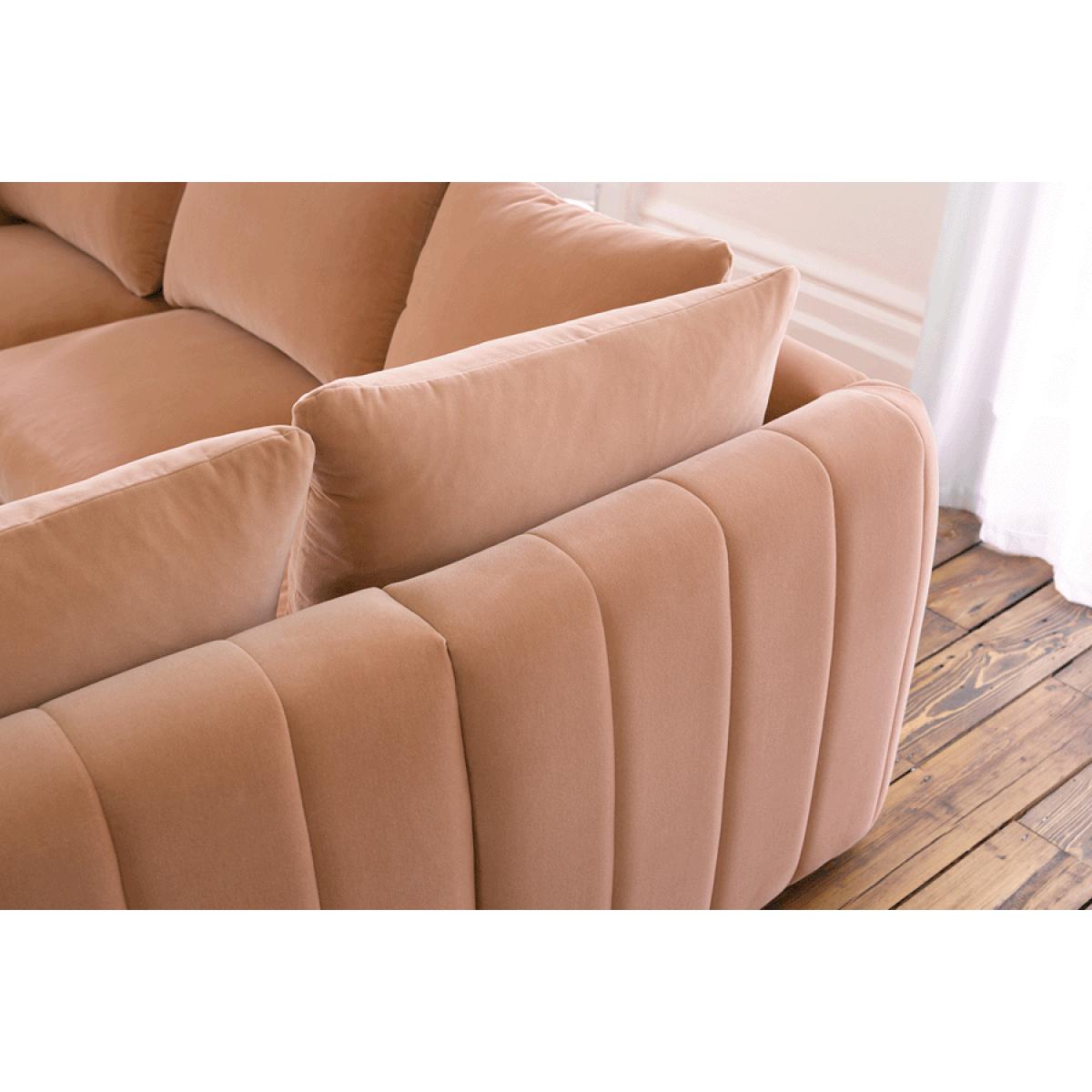 Rosa Velvet Chaise - Left facing with Light Wood Legs