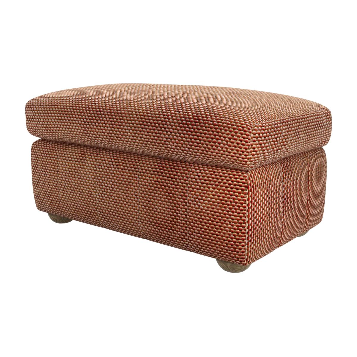 I love this footstool for its bold colour and versatile shape; it’s a practical piece that can complement a variety of interiors. The pomegranate bubble velvet adds a rich, slightly luxurious texture, making it ideal for both contemporary and eclectic schemes. It works particularly well in living rooms that mix modern pieces with vintage touches, or in schemes with warm tones and textured fabrics. For styling, try pairing it with neutral sofas to make the colour pop, or incorporate it into a layered look with patterned cushions and throws in complementary shades. Its medium size and rectangular shape make it functional as a footrest or additional seating without dominating the space, and it’s sturdy enough to work as a subtle statement piece that balances practicality with colour.