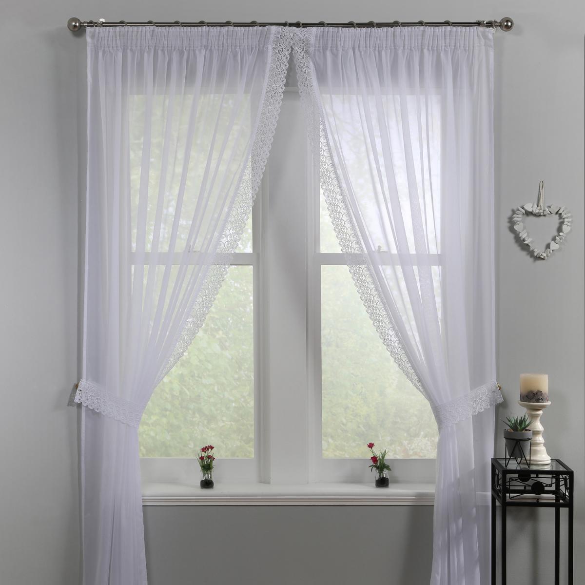 Tiffany Voile Macrame Edge Pencil Pleat Curtains Tiebacks Included - White / 107cm