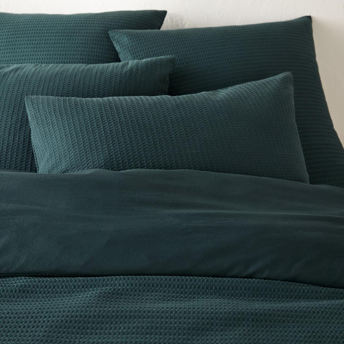 Soft and cosy. Tifly bed linen combines a front in textured honeycomb washed cotton, for a beautiful material effect, and a reverse in washed cotton, for a soft touch on the skin. Plain, it fits easily into all interiors. Designed by La Redoute Interiors. The washed cotton has been delicately bleached during its manufacture. Soft, supple and comfortable, it softens over time. Its slightly wrinkled appearance is incredibly on-trend, and it does not require ironing. Product Details • 100% cotton • Washed cotton • Honeycomb front, 340g/m² • Cotton back, 115g/m² • Straight buttoned hem Care Advice • Machine washable at 60°C • By washing your laundry at 40°C instead of 60°C, you limit energy consumption. Sizes • 140 x 200cm: Single • 200 x 200cm: Double • 240 x 220cm: King • 260 x 240cm: Super King • OEKO-TEX® Standard 100. Standard 100 certification by OEKO-TEX® tests textile products for harmful substances via an independent, international label.