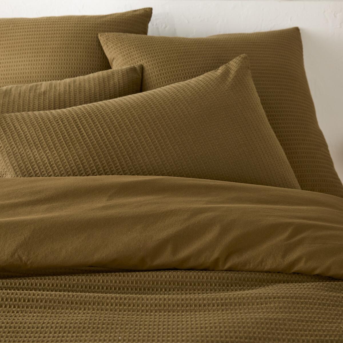 Soft and cosy. Tifly bed linen combines a front in textured honeycomb washed cotton, for a beautiful material effect, and a reverse in washed cotton, for a soft touch on the skin. Plain, it fits easily into all interiors. Designed by La Redoute Interiors. The washed cotton has been delicately bleached during its manufacture. Soft, supple and comfortable, it softens over time. Its slightly wrinkled appearance is incredibly on-trend, and it does not require ironing. Product Details • 100% cotton • Washed cotton • Honeycomb front, 340g/m² • Cotton back, 115g/m² • Straight buttoned hem Care Advice • Machine washable at 60°C • By washing your laundry at 40°C instead of 60°C, you limit energy consumption. Sizes • 140 x 200cm: Single • 200 x 200cm: Double • 240 x 220cm: King • 260 x 240cm: Super King • OEKO-TEX® Standard 100. Standard 100 certification by OEKO-TEX® tests textile products for harmful substances via an independent, international label.