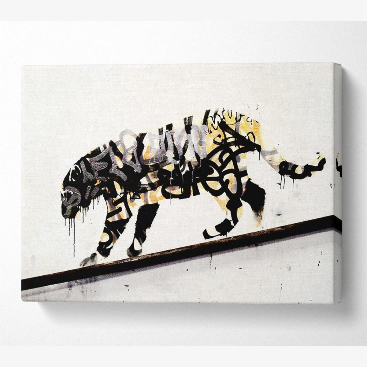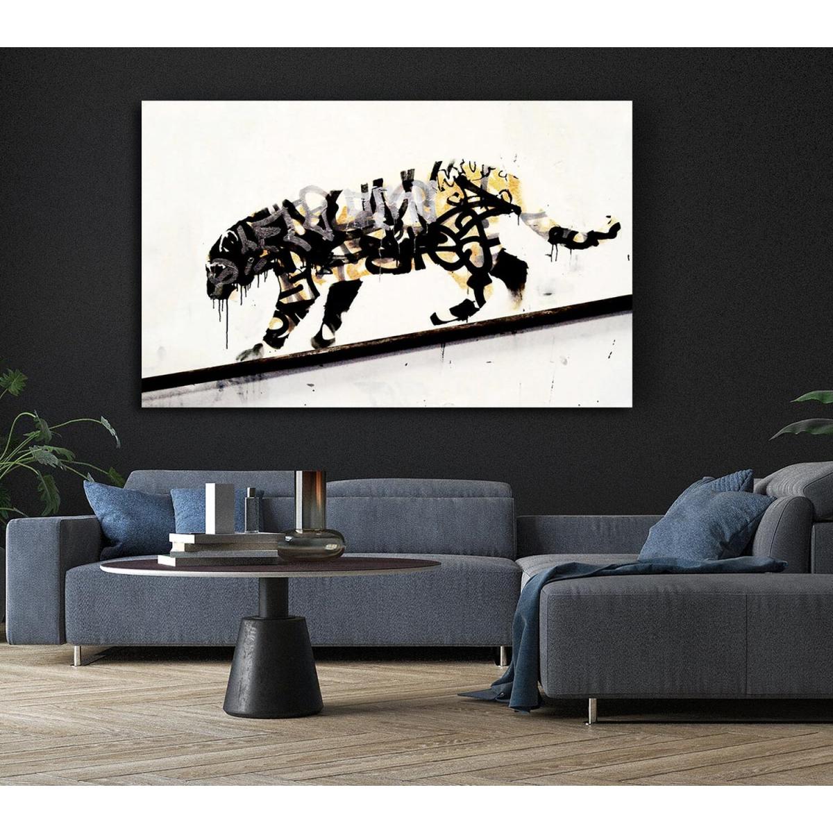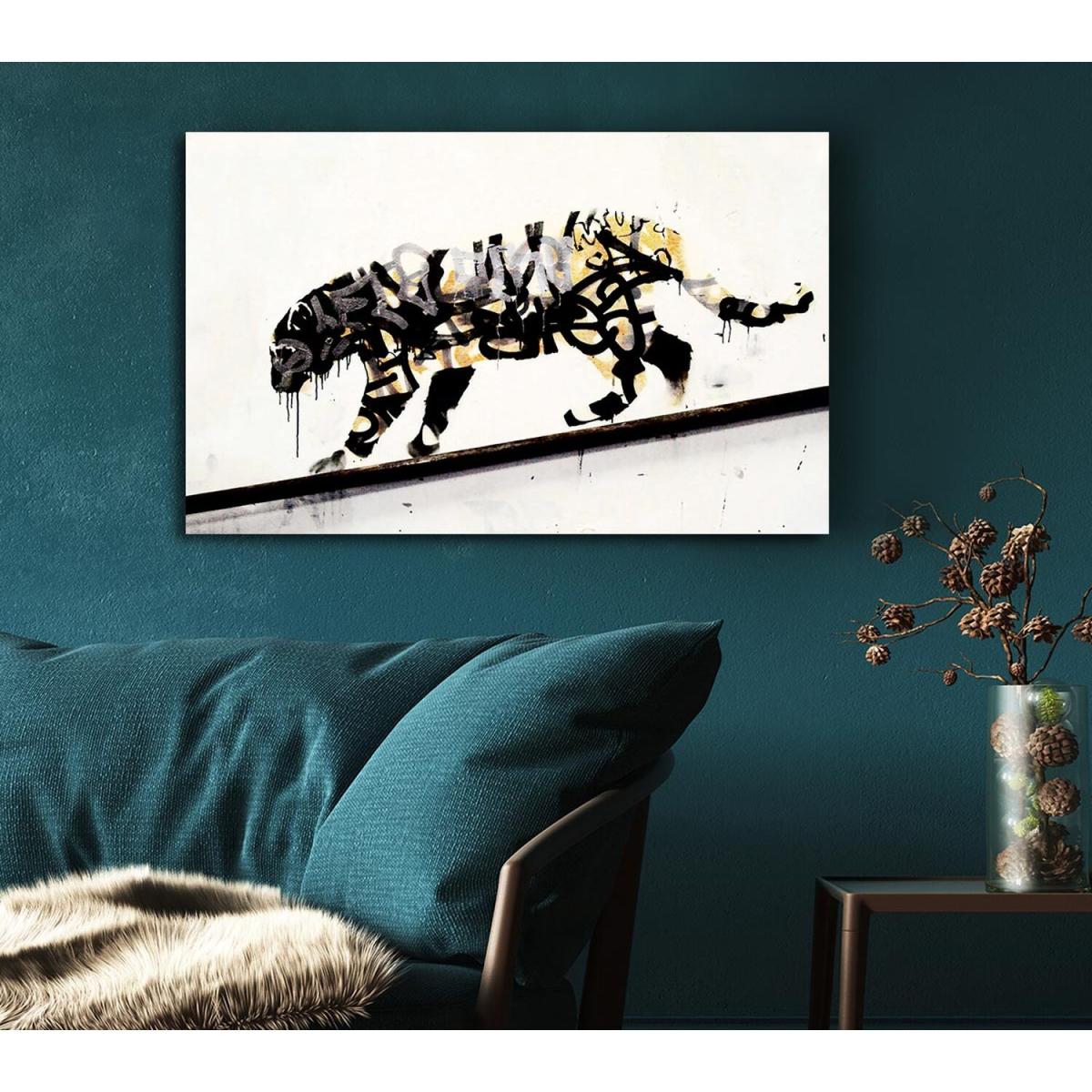 I love this piece because of its contemporary, urban feel that really adds character to a space. The artwork’s monochrome palette with bold black accents makes it highly versatile-working well in modern, minimalist, or eclectic interiors. It’s small enough to serve as a statement piece above a sofa or console, but also flexible enough to be part of a gallery wall. For a polished look, pair it with sleek frames or keep it unframed for an understated vibe. This piece works particularly well in industrial or monochrome schemes, but can also inject a touch of edge into softer, more neutral environments. Practical tip: hang it at eye level for maximum impact and don’t be afraid to pair with other urban-inspired accessories for a cohesive look.