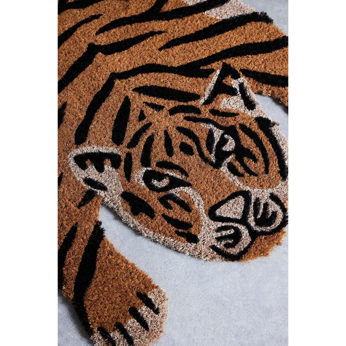 Channel your wild side with this door mat. Shaped like a lil tiger stretched out on your floor featuring vibrant detailing and striped motifs. Made from a tufted fabrication with a stay-put latex backing. **Content + Care** \- 100% Coir \- Spot clean **Size** \- 20x30