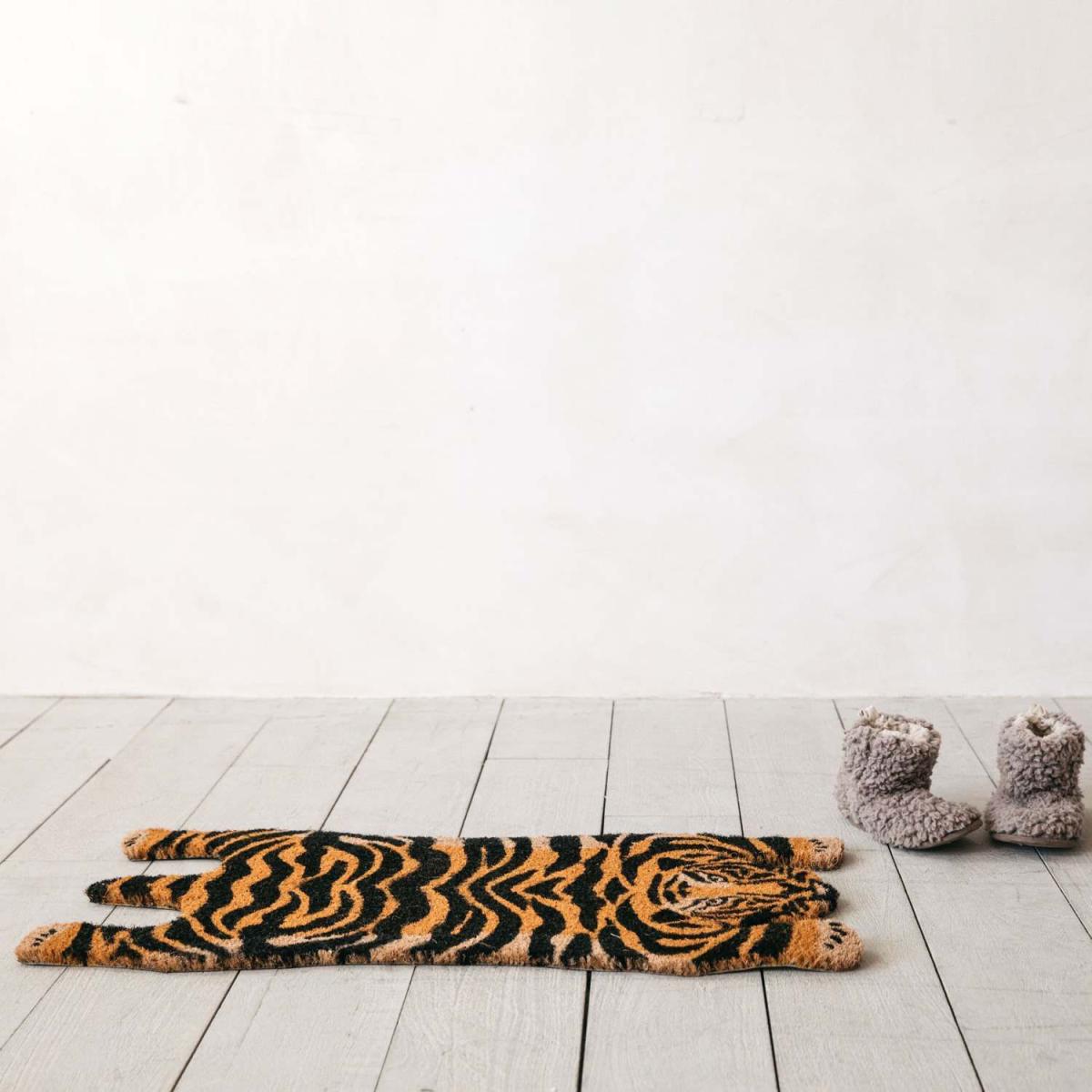 Boldly welcome guests to your door with our tiger doormat. Made from coir, each mat is shaped like a tiger skin and features the eye-catching black stripes and orange colouring characteristic of this majestic creature.