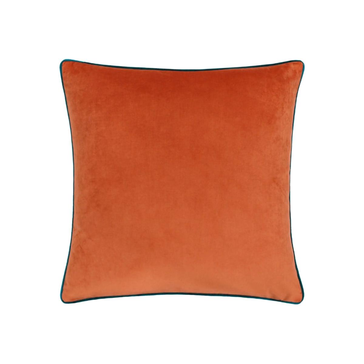 This velvet cushion in deep teal with striking tiger-orange piping combines rich color with luxurious texture. Its bold contrast creates a striking decorative accent perfect for contemporary interiors.