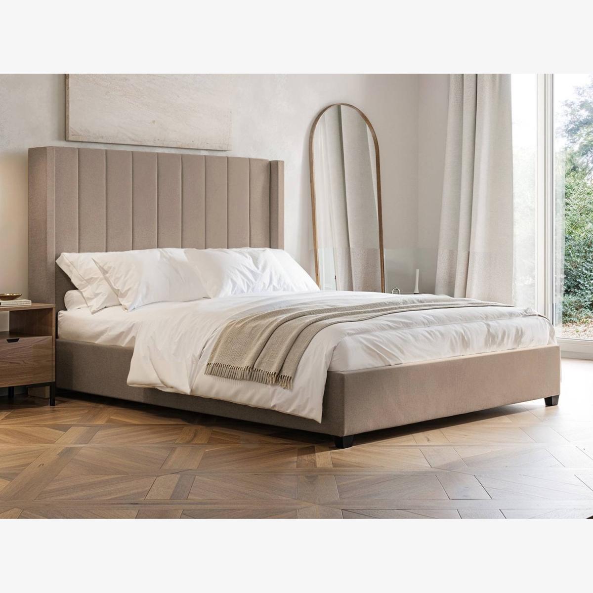Tiggy Beige Velvet Ottoman Bed with Winged Headboard - Beige