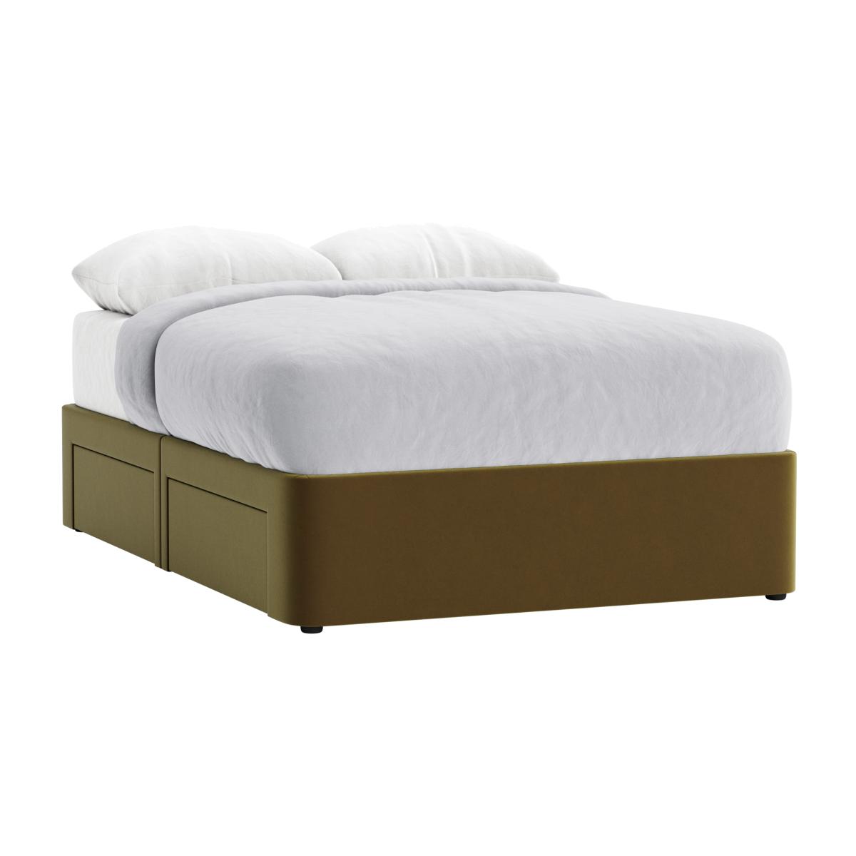 I really like this storage bed for its practical yet clean design, making it a versatile choice for various interiors. It works especially well in smaller bedrooms or urban spaces where maximising storage is essential without sacrificing style. I’d suggest pairing it with simple, understated bed linens in neutral tones for a sleek, modern look, or adding cosy textured throws for a more relaxed, lived-in vibe. The olive green base adds a subtle colour depth, so it pairs nicely with warm earthy tones or muted palettes. To keep the space feeling uncluttered, use bedside tables with hidden drawers or open shelving to complement the bed’s storage functionality, creating a streamlined and organised aesthetic.