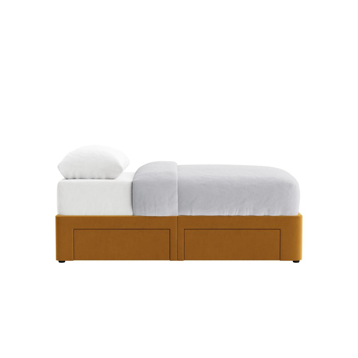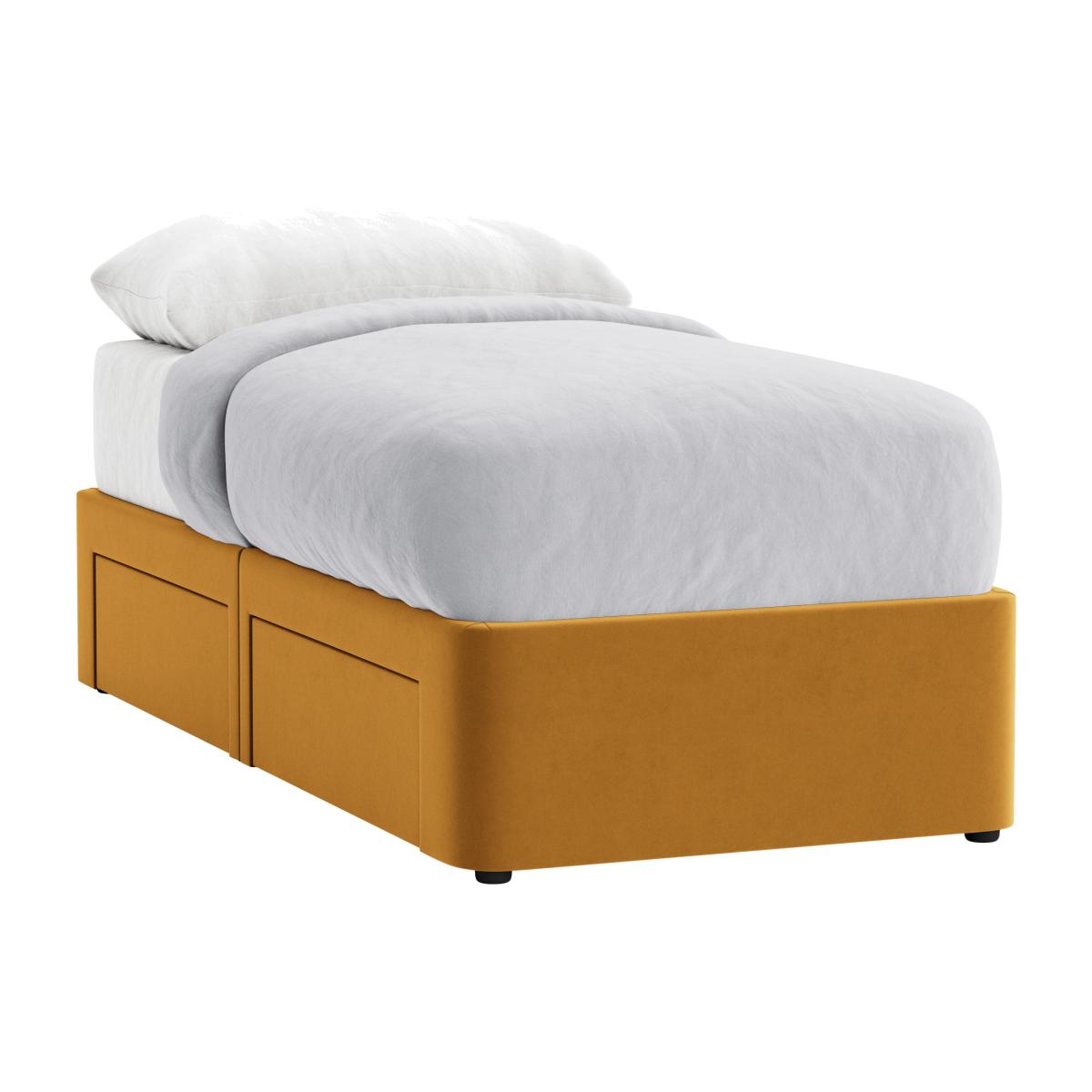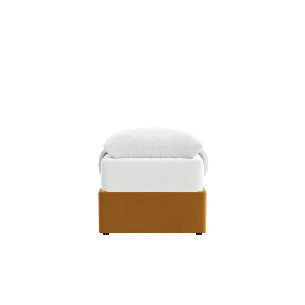 I love this storage bed for its clean, functional design that works well in both contemporary and eclectic interiors. Its practical storage solution is ideal for maximising space in smaller bedrooms or studio apartments, offering a discreet hideaway for bedding, clothes or other essentials. The mustard base adds a playful yet sophisticated touch, making it versatile enough to pair with soft neutrals or bold colour schemes. Styling tips include layering with textured bedding and cushions to soften its modern edge, and placing a rug underneath to anchor the space. This piece is perfect for those wanting form and function without sacrificing style.