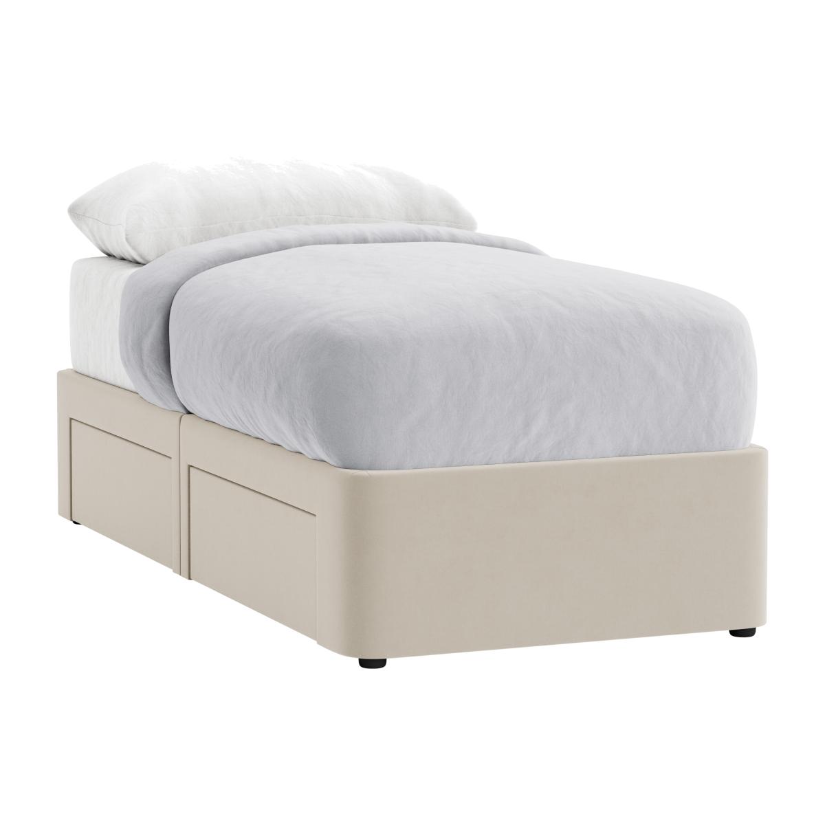The same as our Space bed but with handy drawers and a fixed fabric cover. So if valances aren't your thing, this should be just the ticket.