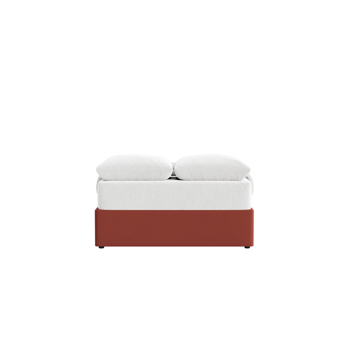 I love this storage bed for its sleek, practical design that maximises space without sacrificing style. It works particularly well in bedrooms where space is tight or for those who want a clean, minimalist look. The terracotta hue adds warmth and flexibility, complementing both modern and earthy interiors. To style around it, consider using soft, neutral bedding and layered textures to create a cosy vibe, while keeping accessories minimal to let the bed be a focal point. Pairing it with simple bedside tables or open shelving can further call out its streamlined profile, making it a functional yet stylish centrepiece in any compact bedroom.