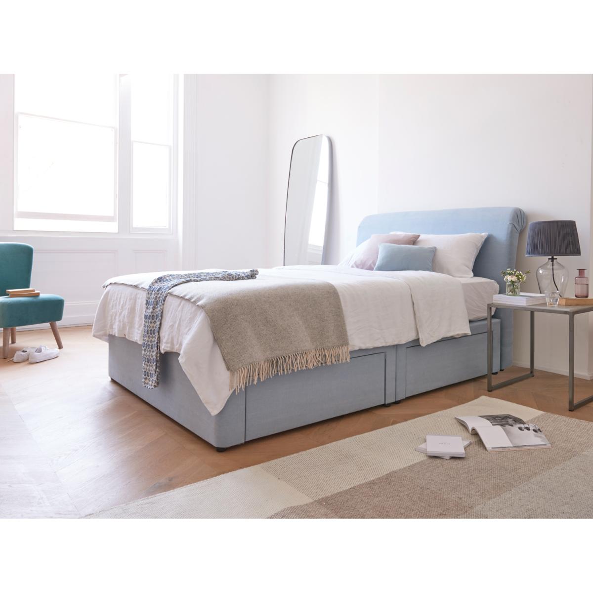 I love this storage bed for its practicality and clean design, making it perfect for limiting spaces without sacrificing style. It works particularly well in contemporary or minimalist interiors where sleek lines and neutral tones are key, but it can also complement more eclectic schemes if styled carefully. Practical styling tips include using the under-bed storage for seasonal bedding or shoes, keeping the space clutter-free. Pair it with soft, cosy bedding and minimal accessories to enhance its streamlined look, or add a statement headboard or layered textiles to soften the overall feel and create a welcoming atmosphere.