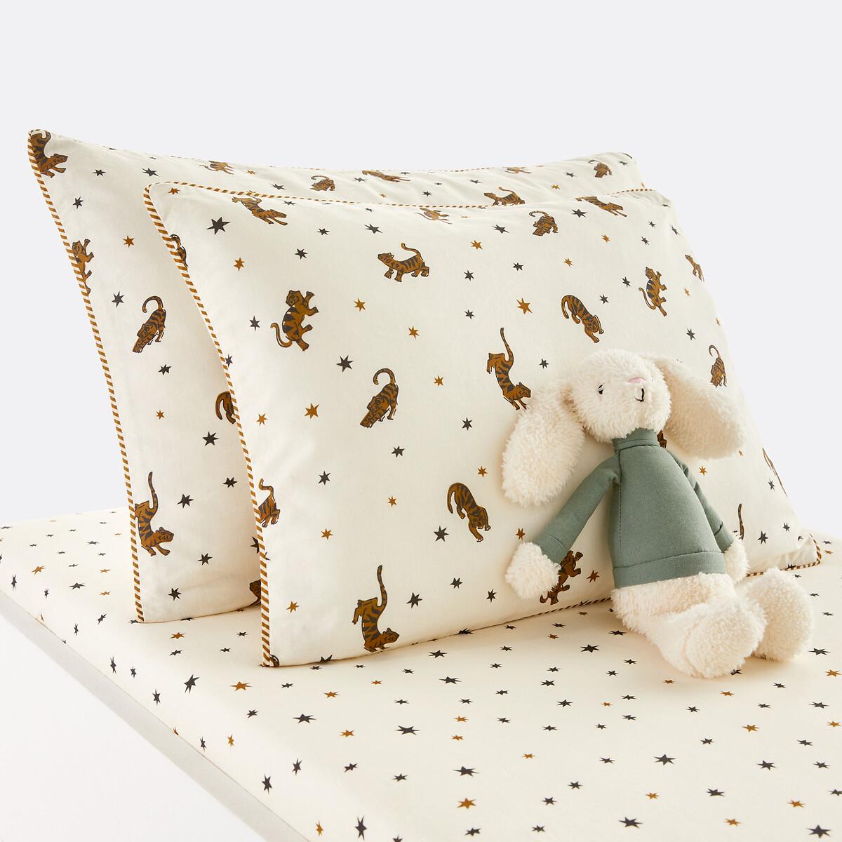 A gentle tiger wandering among the stars: this is Tigris. This bed linen with a playful pattern brings a decorative touch to your baby's room. It is highlighted with a striped bias. Designed by La Redoute Interiors. The washed cotton has been delicately bleached during its manufacture. Soft, supple and comfortable, it softens over time. Its slightly wrinkled appearance is incredibly on-trend, and it does not require ironing. Product Details • 100% cotton, 115g/m2 • Contains 50% recycled cotton • Washed cotton • Tiger motif print on both sides • Contrasting striped bias finish • 144 thread count. Match this item with the rest of the bedding in the range for a stylish bedroom. And you can mix and match it with different colours and styles from our other bedding ranges when you want to change things up and create your own unique look.. Care Advice • Machine washable at 40°CDimensions • 35 x 45cm : Rectangular pillowcase • 40 x 60cm: Rectangular pillowcase • Recycled cotton. Using recycled cotton is all about conserving resources and reducing waste. • OEKO-TEX® Standard 100. Standard 100 certification by OEKO-TEX® tests textile products for harmful substances via an independent, international label.