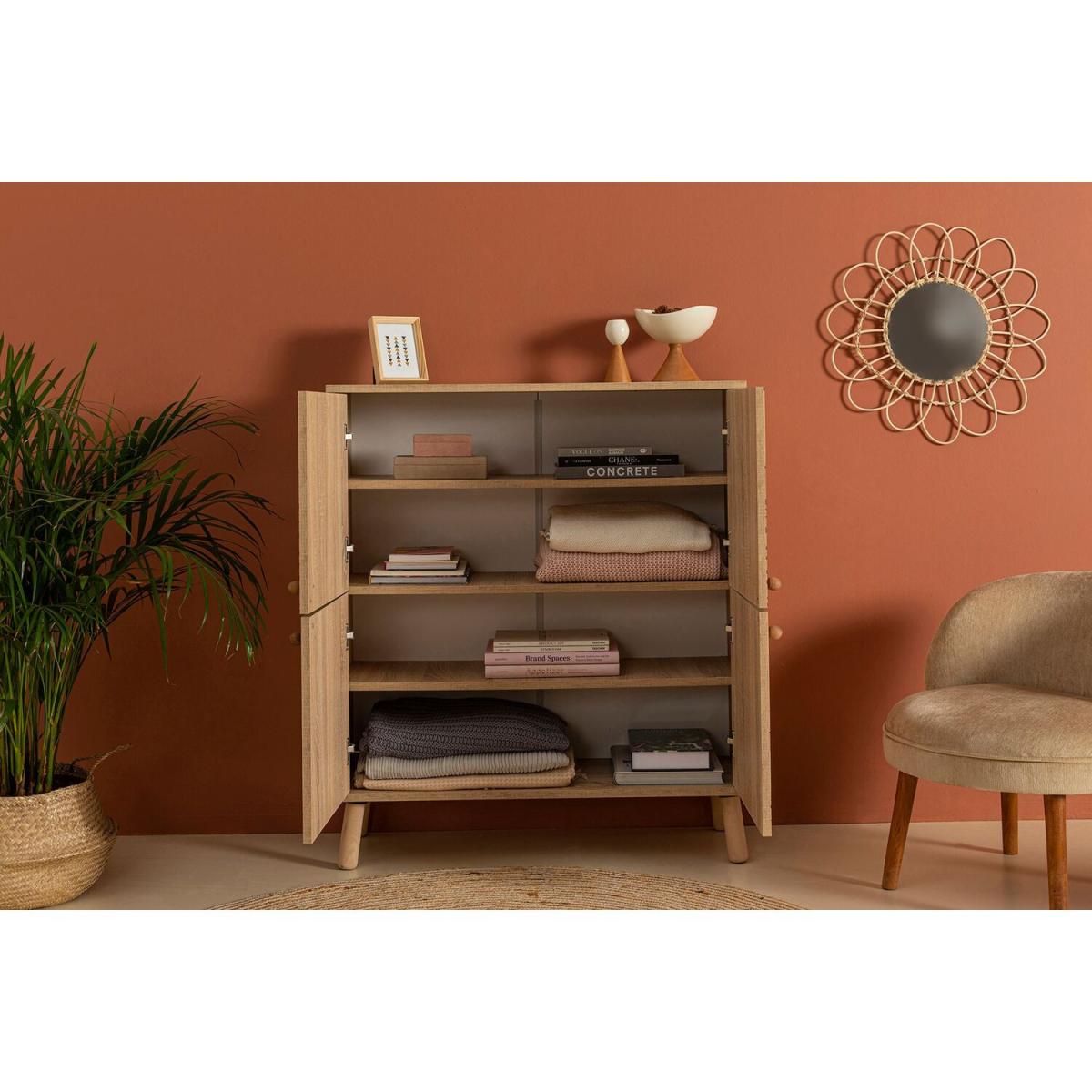 This sideboard has an elegant and functional design. It has 4 doors and 4 shelves that offer ample amount of storage space for your needs.