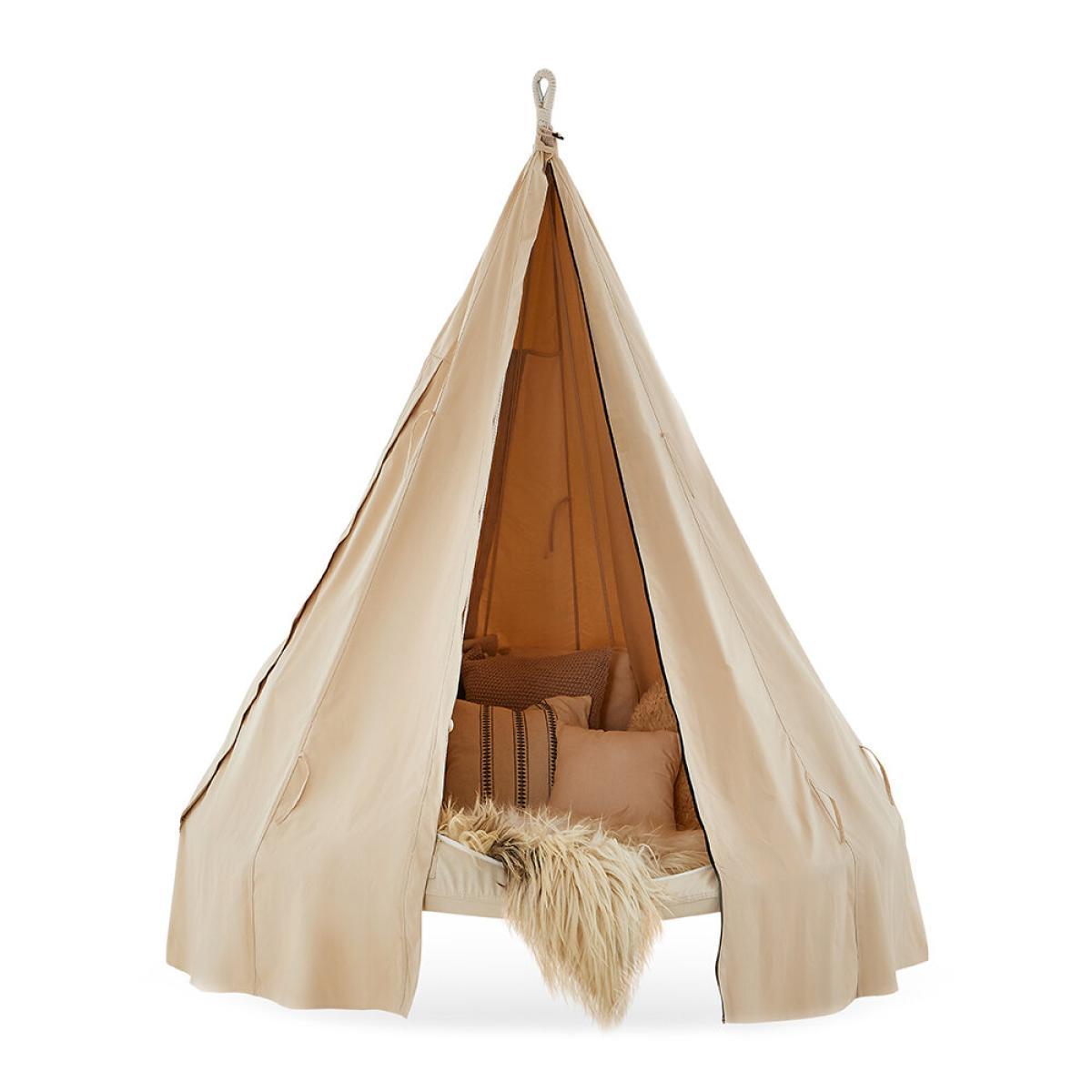 Protect your Tiipii in style with this classic poncho cover. Crafted from a waterproof canvas, this cover is UV, mildew, and mould resistant. Soft beige in colour, it features three openable, fine netted windows and one main zippered door.