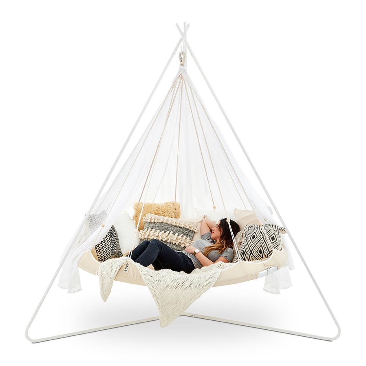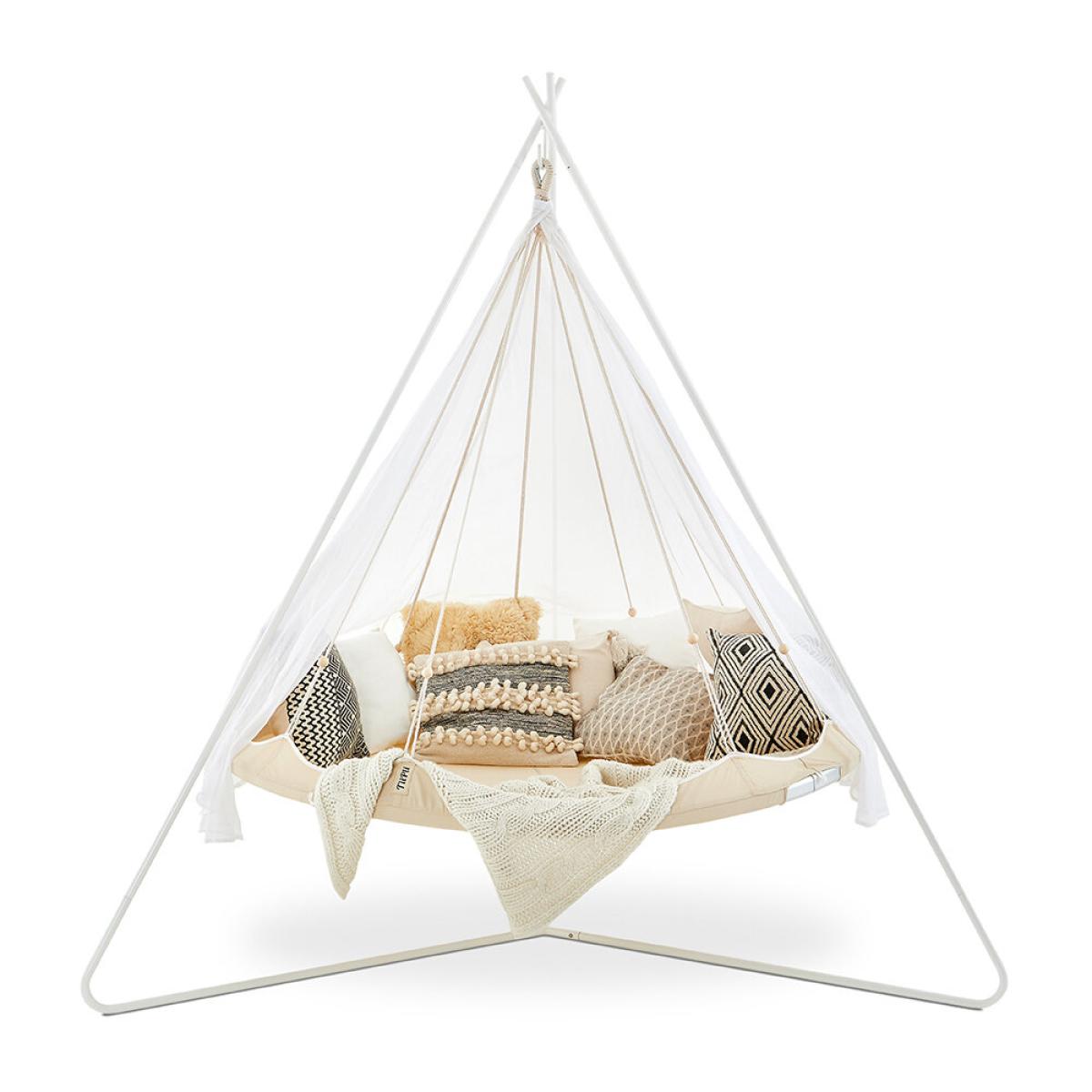 Designed to support the Classic Tiipii bed, this stand is crafted from a powder coated steel in a matt white finish. Suitable for using both inside and out, it folds away into a canvas bag for easy storage.
