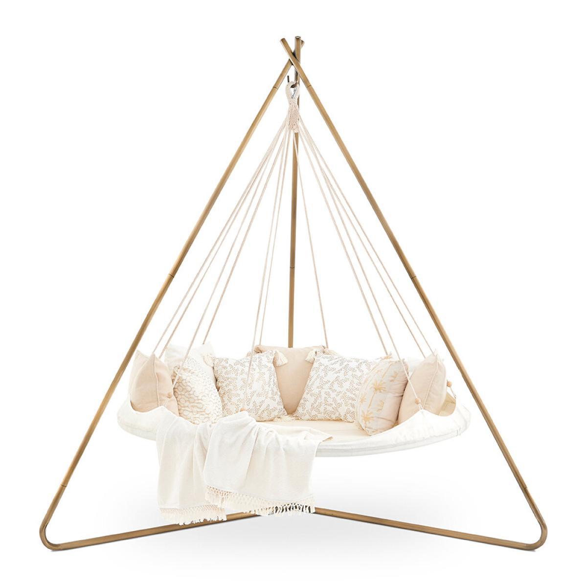 Designed to support the Deluxe or Classic Tiipii bed range, this stand is crafted from high quality, heavy duty 316 stainless steel in a sleek gold finish. Resilient against rust, corrosion, salt, and chlorine, it folds down into a convenient canvas storage bag. Key features: * Material: 316 stainless steel * Dimensions: H255xW245xL215cm * Max weight: 250kg * Gold colour * Resilient against rust, corrosion, salt, and chlorine * Designed to use with the Deluxe or Classic Tiipii beds * Foldable for easy storage * Suitable for indoor and outdoor use