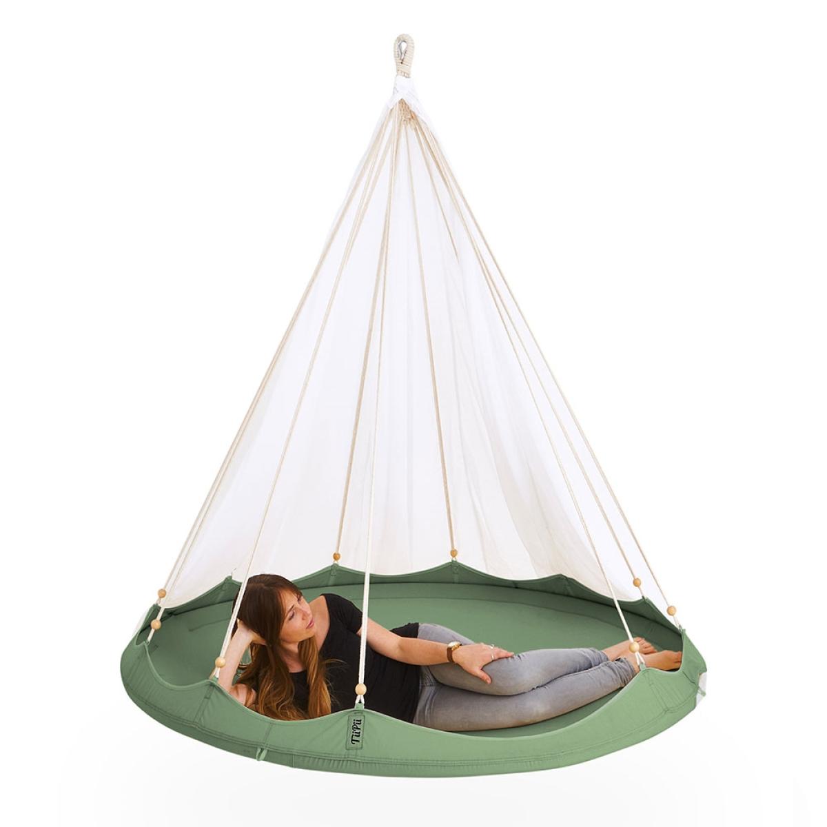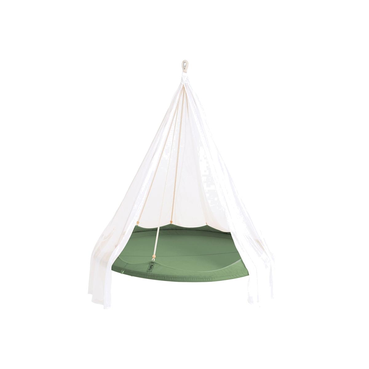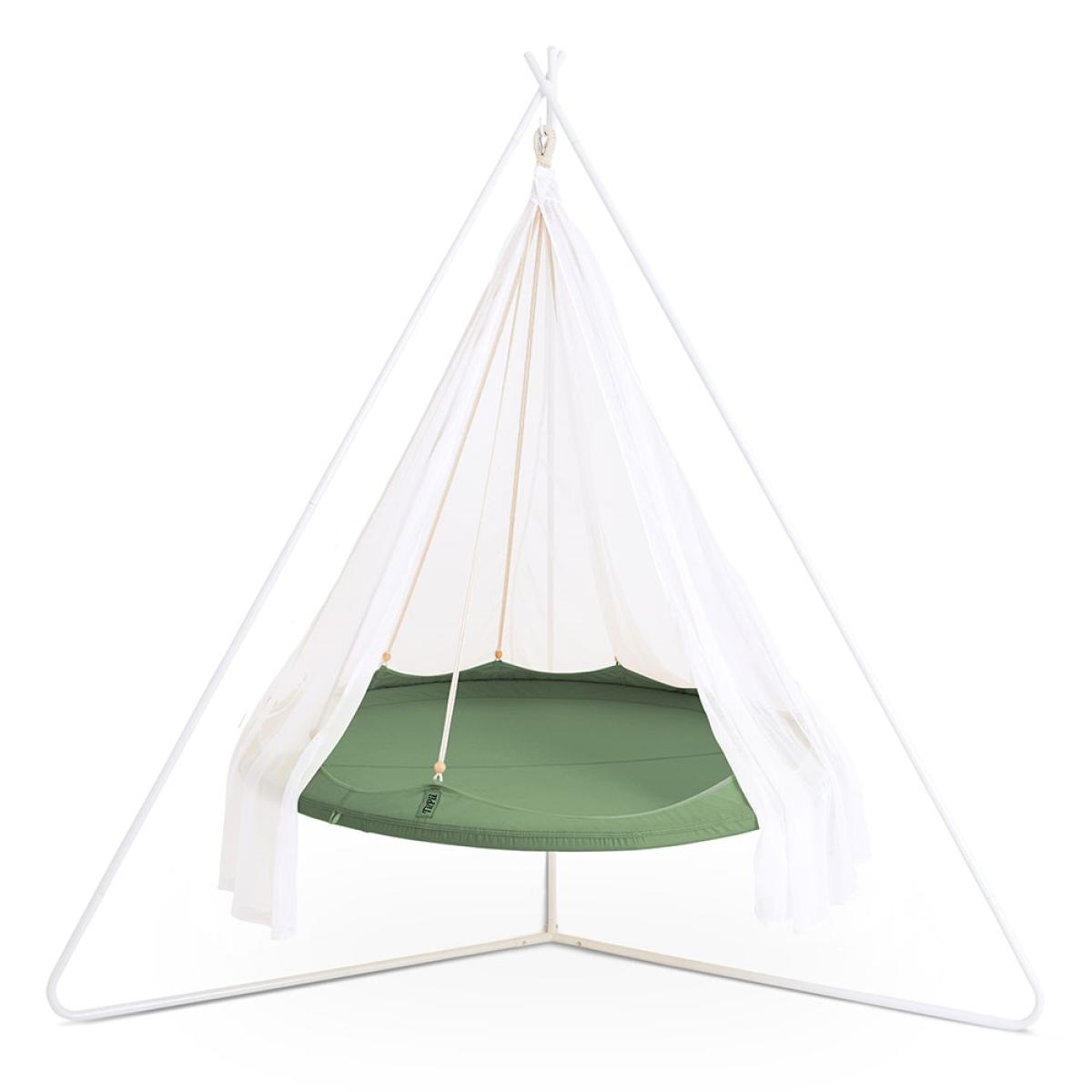 Bring a little slice of Australia into your life and reinvent the way you relax with the brilliant Hammock Bed from Tii. Pii. Quick and easy to assemble; simply suspend from the ceiling, a beam or a tree and swing in your favourite sunny spot. For no nails, no fuss and extra security why not pair with the matching Tii Pii Tripod Stand in white or bronze! Complete with a matching storage carry bag there's no limit to where you can hang out! For added privacy, the attachable net also keeps the bugs at bay making it the perfect camping accessory! Made from anti-mould, anti-UV and water resistant materials, the durable poly-cotton canvas can handle a downpour or two. For extra protection and for added fun, the Weatherproof Rain Cover transforms your Hammock Bed into a floating Teepee tent for camping and relaxing in the wetter weather and can be left outside all year round without worry. Not just suited to outside spaces, create a cosy corner indoors with scatter cushions and throws. Offering 2 sizes and 4 gorgeous colours, natural white, green, charcoal or taupe; you'll want one in every style!.