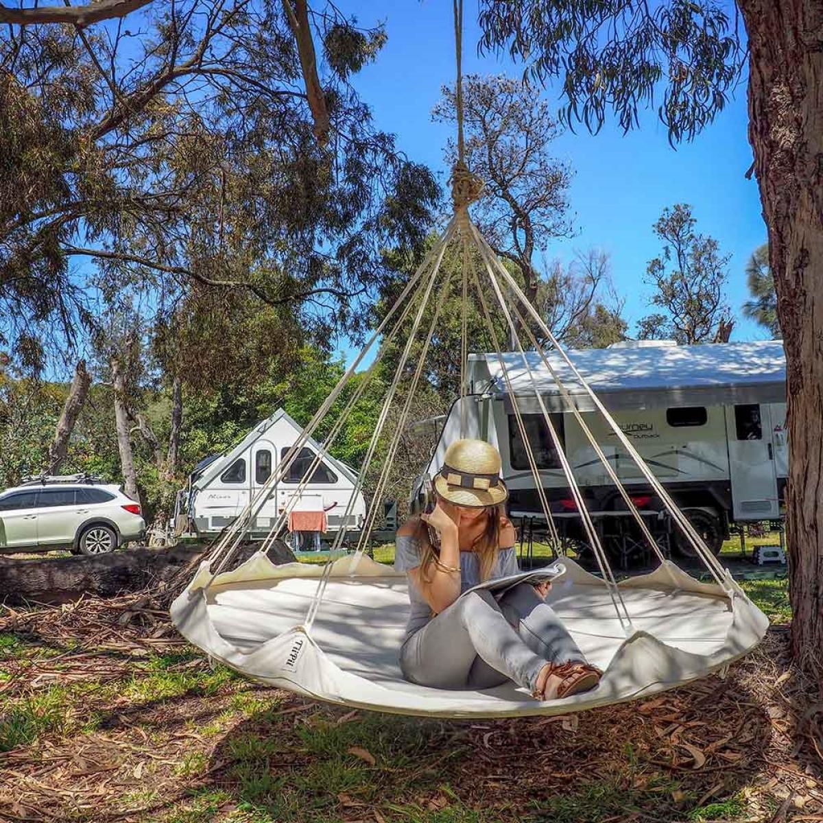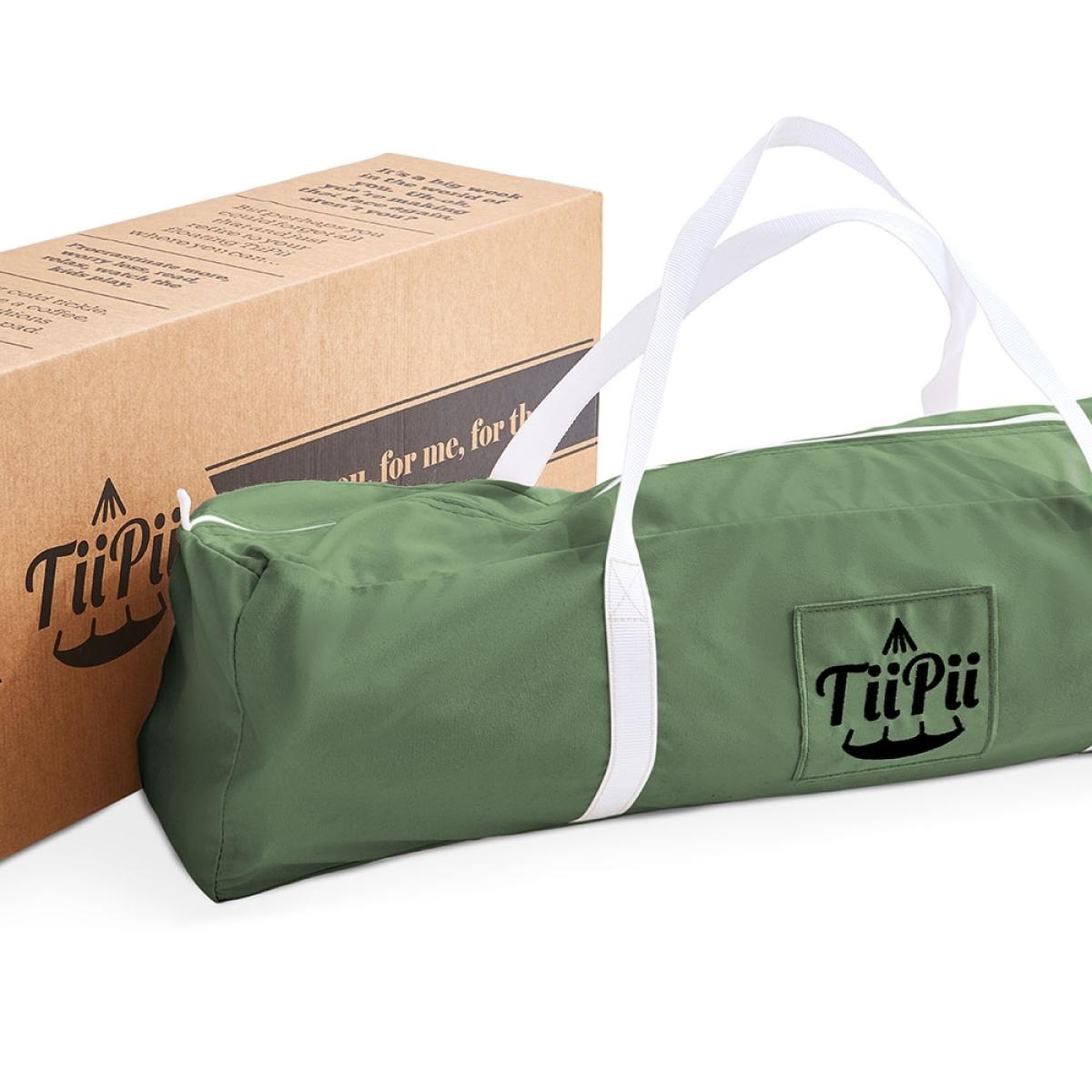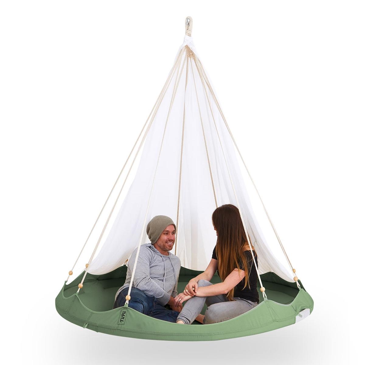 Bring a little slice of Australia into your life and reinvent the way you relax with the brilliant Hammock Bed from Tii. Pii. Quick and easy to assemble; simply suspend from the ceiling, a beam or a tree and swing in your favourite sunny spot. For no nails, no fuss and extra security why not pair with the matching Tii Pii Tripod Stand in white or bronze! Complete with a matching storage carry bag there's no limit to where you can hang out! For added privacy, the attachable net also keeps the bugs at bay making it the perfect camping accessory! Made from anti-mould, anti-UV and water resistant materials, the durable poly-cotton canvas can handle a downpour or two. For extra protection and for added fun, the Weatherproof Rain Cover transforms your Hammock Bed into a floating Teepee tent for camping and relaxing in the wetter weather and can be left outside all year round without worry. Not just suited to outside spaces, create a cosy corner indoors with scatter cushions and throws. Offering 2 sizes and 4 gorgeous colours, natural white, green, charcoal or taupe; you'll want one in every style!.
