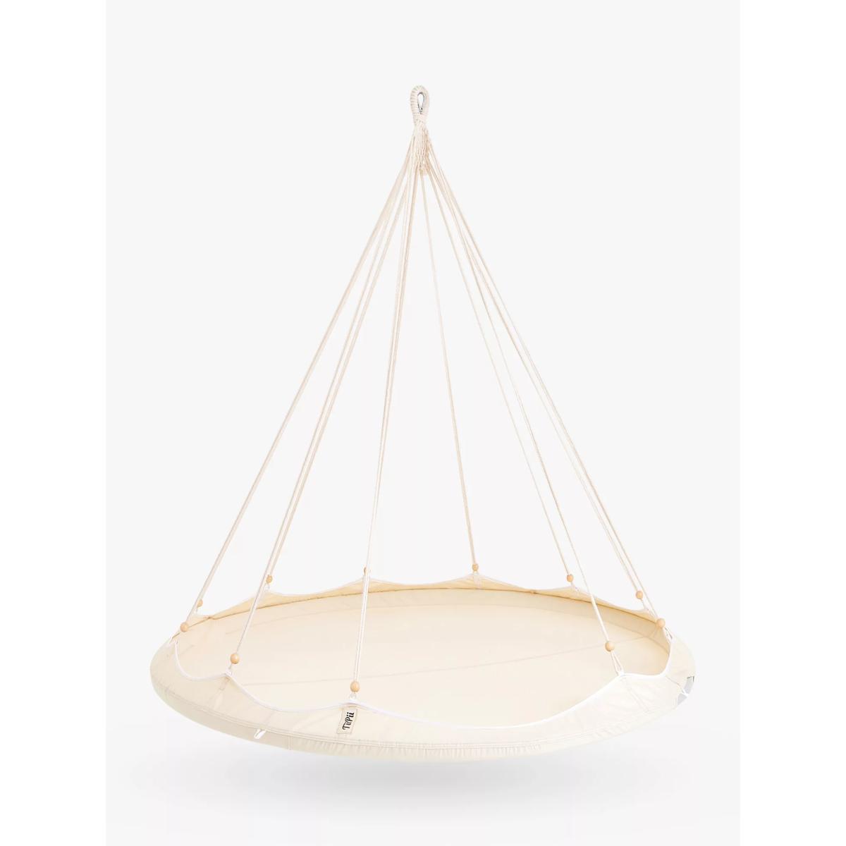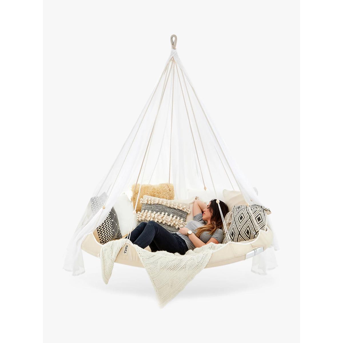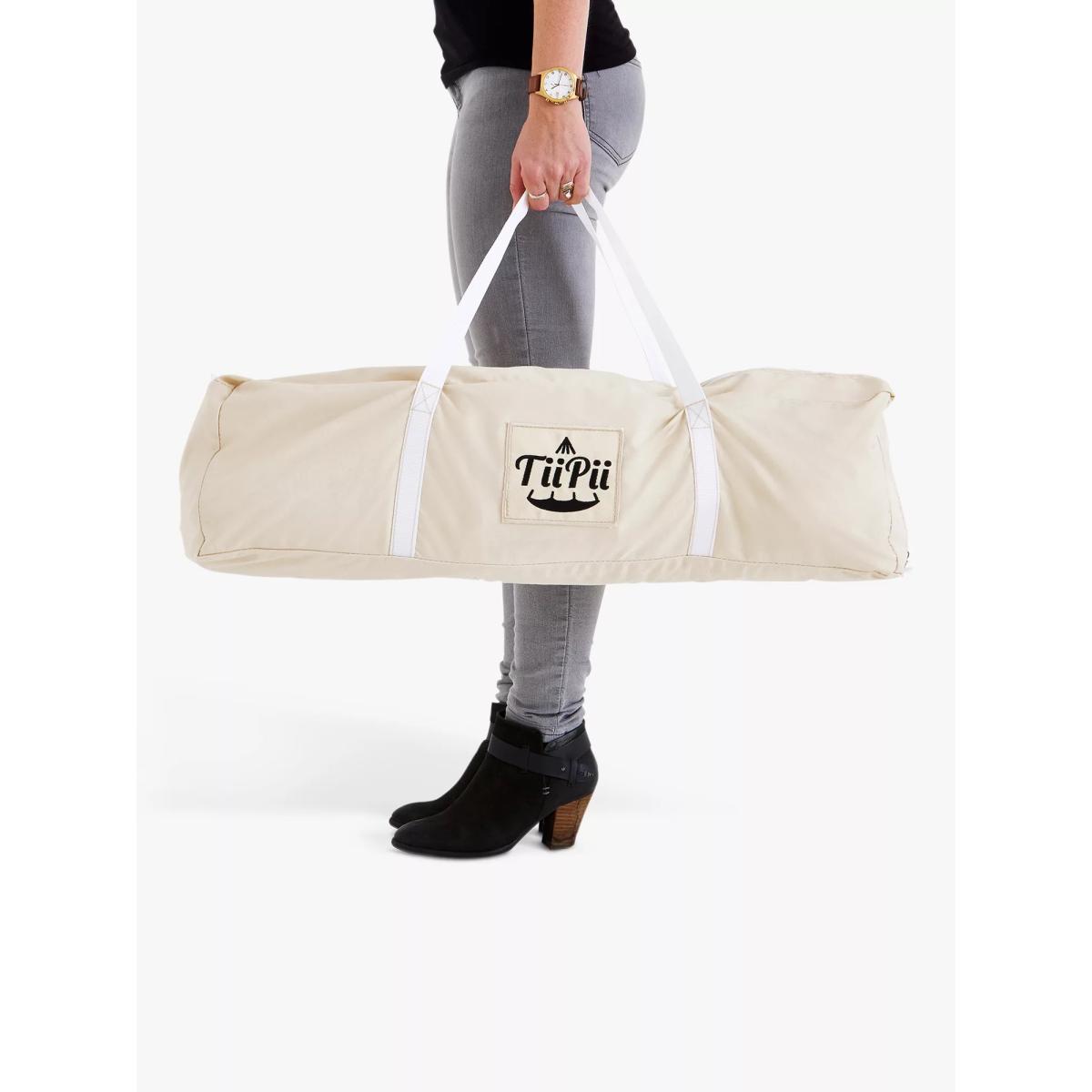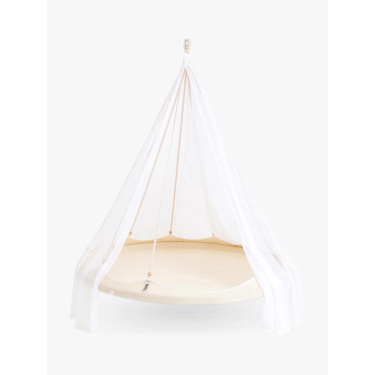 Explore your new Tii Pii space: read, play, snuggle, inspire, sleep, relax; it's up to you. The Medium Classic Tii Pii Bed comfortably supports two to three adults and is the ultimate floating daybed for couples, small families or those with a little less space. It's ideal for relaxing indoors or for seasonal periodic use in the garden. Use as an indoor daybed, outdoor porch swing, hanging garden chair, floating bed or luxury hammock to camp, adventure and explore with. Designed with high-quality soft polycotton canvas and macramé finishing touches, this Tiipii has a cosy attachable white sheer net to cocoon or lightly shade. Suspend it from a safe beam or branch to save space or pair it with either the Classic or Deluxe Tii Pii Tripod Stand, sold separately. All elements compact down into a convenient transportable canvas storage bag, giving you the option to take the Tii Pii on holiday, to a festival or on the road to your next adventure. Key features: Suitable for indoor and light outdoor use Made with marine-grade polycotton canvas Anti-mould, anti-UV and water-resistant Supports up to 250kg Easily assembled in 10 minutes Includes sheer white ambient net Strong aluminium ring sections Machine washable Compacts down into a 60cm bag for storage and transportation Free-hang or suspend from a Tii Pii Stand (sold separately) Protect when outside with the Poncho Weather Cover (sold separately)