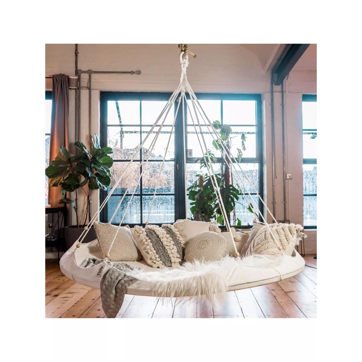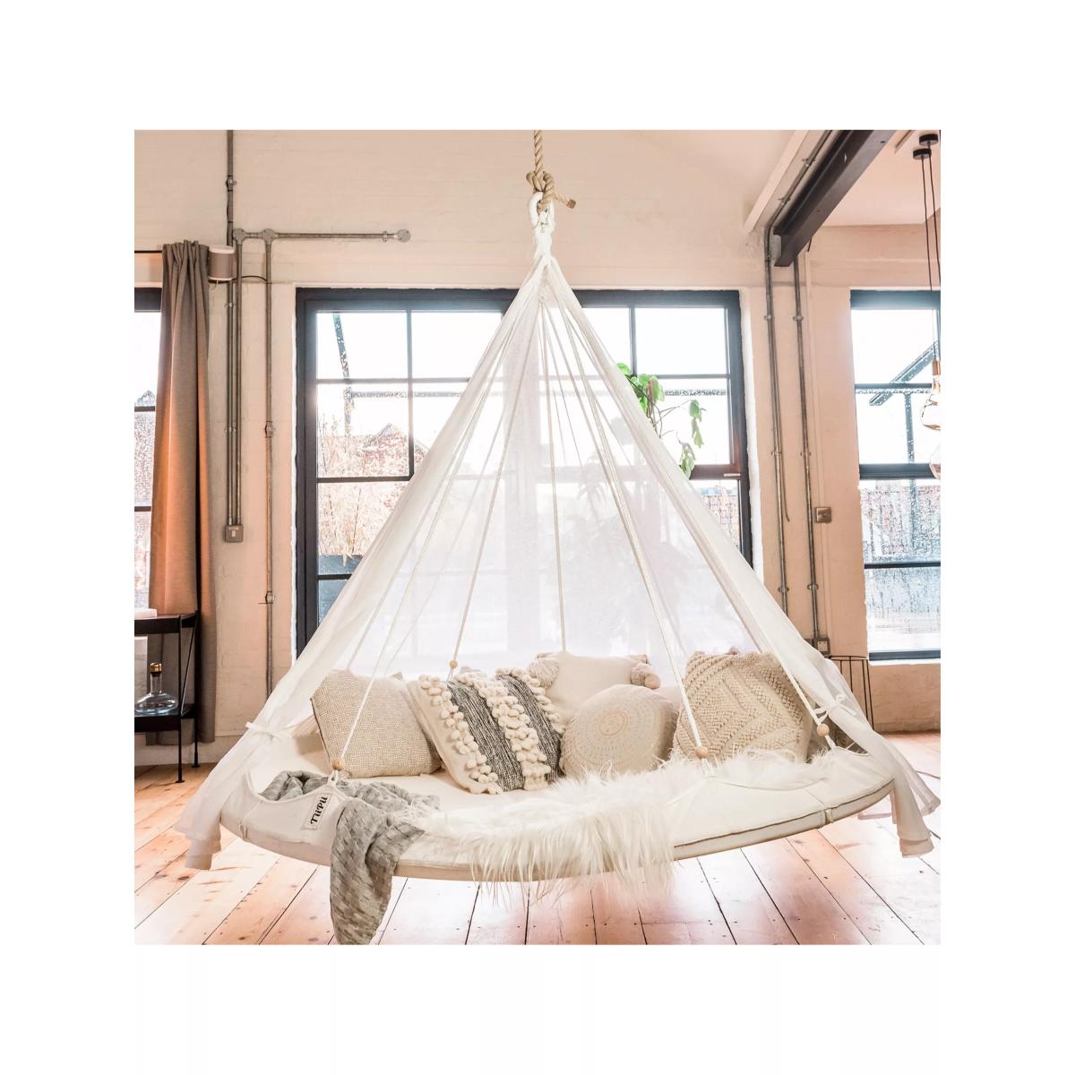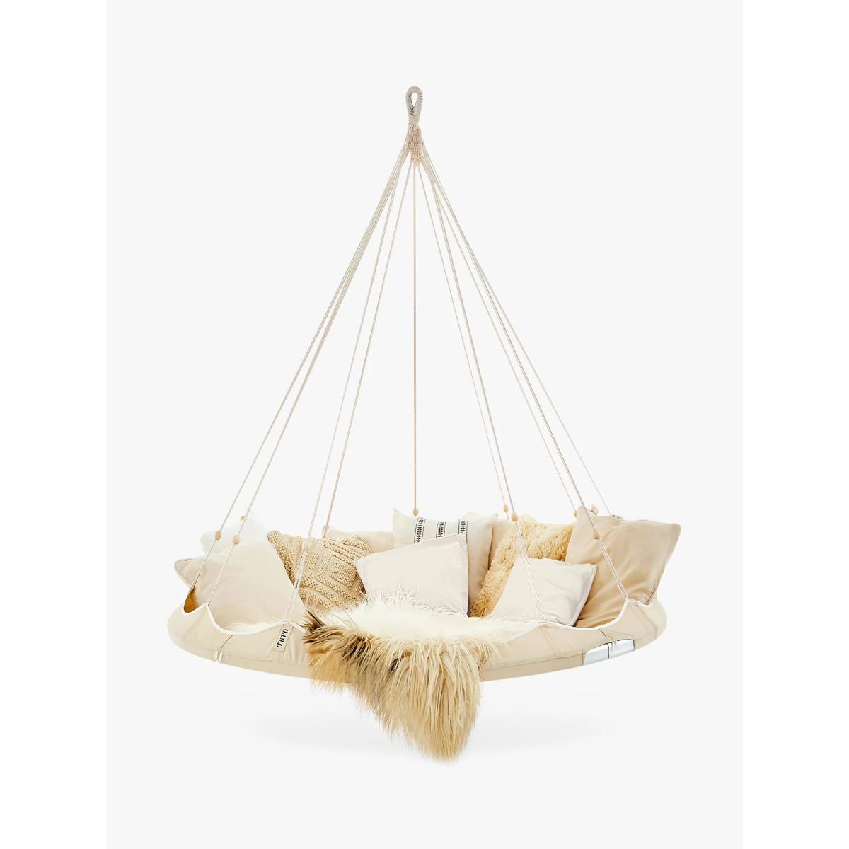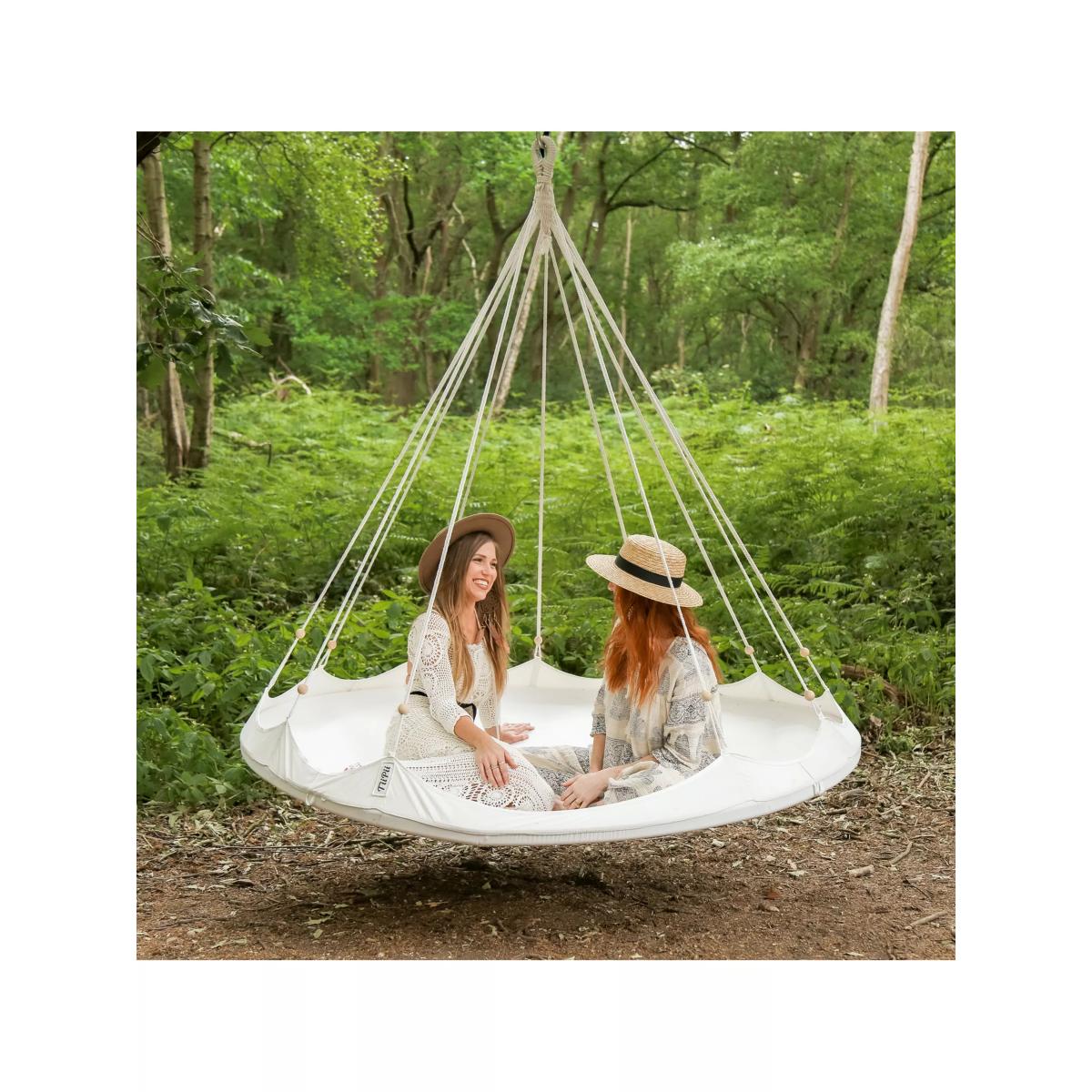 Explore your new Tii Pii space: read, play, snuggle, inspire, sleep, relax; it's up to you. The Medium Classic Tii Pii Bed comfortably supports two to three adults and is the ultimate floating daybed for couples, small families or those with a little less space. It's ideal for relaxing indoors or for seasonal periodic use in the garden. Use as an indoor daybed, outdoor porch swing, hanging garden chair, floating bed or luxury hammock to camp, adventure and explore with. Designed with high-quality soft polycotton canvas and macramé finishing touches, this Tiipii has a cosy attachable white sheer net to cocoon or lightly shade. Suspend it from a safe beam or branch to save space or pair it with either the Classic or Deluxe Tii Pii Tripod Stand, sold separately. All elements compact down into a convenient transportable canvas storage bag, giving you the option to take the Tii Pii on holiday, to a festival or on the road to your next adventure. Key features: Suitable for indoor and light outdoor use Made with marine-grade polycotton canvas Anti-mould, anti-UV and water-resistant Supports up to 250kg Easily assembled in 10 minutes Includes sheer white ambient net Strong aluminium ring sections Machine washable Compacts down into a 60cm bag for storage and transportation Free-hang or suspend from a Tii Pii Stand (sold separately) Protect when outside with the Poncho Weather Cover (sold separately)