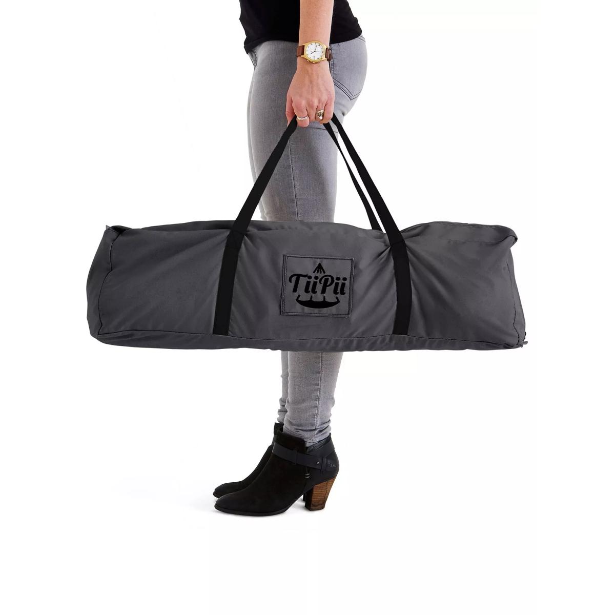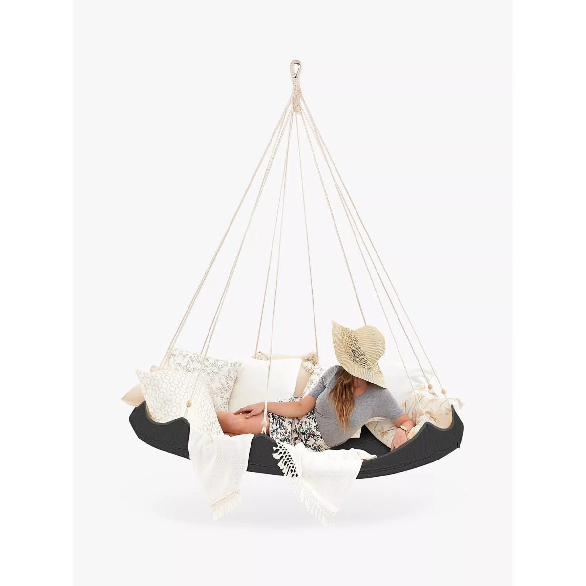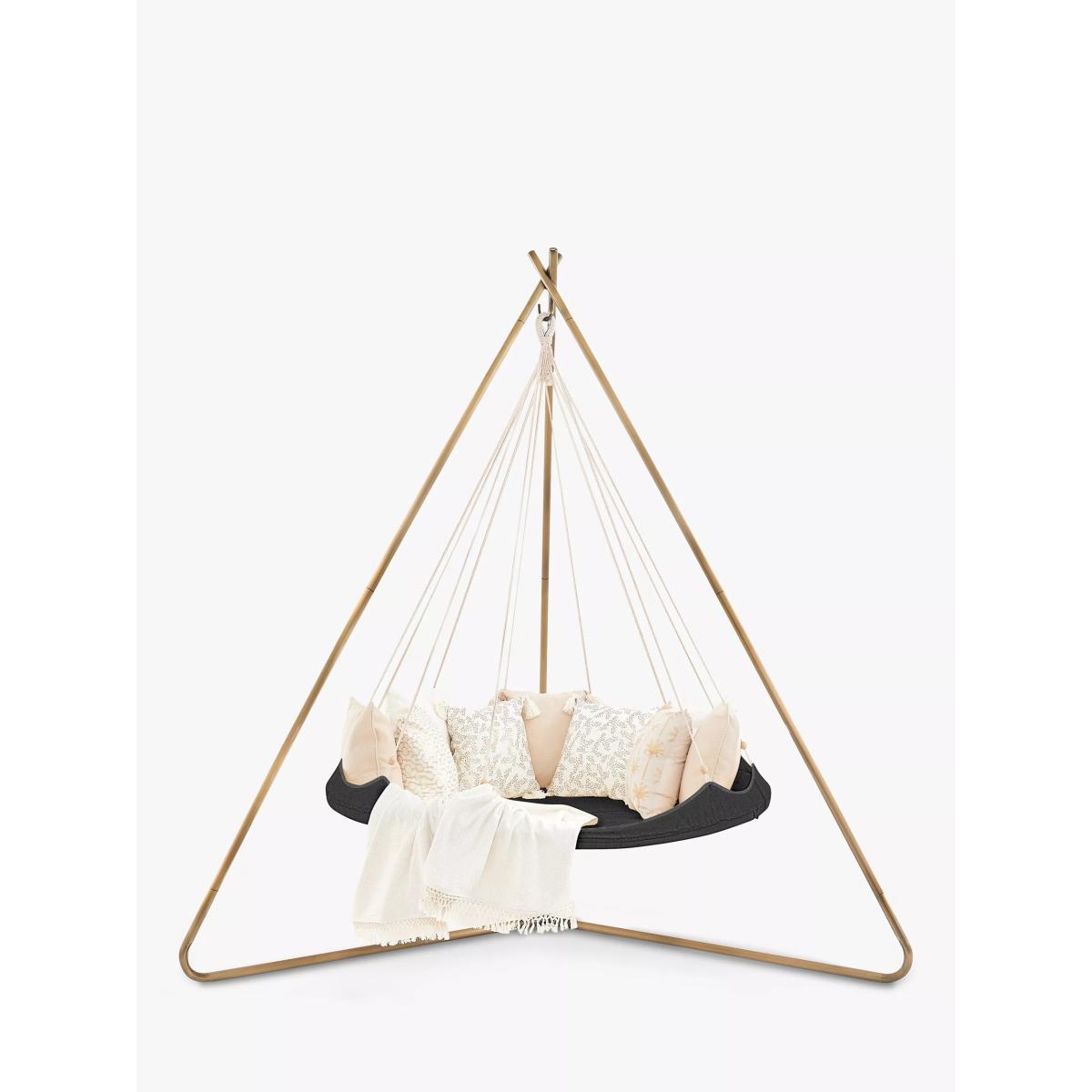 Explore your new Tii Pii space: read, play, snuggle, inspire, sleep, relax; it's up to you. The Medium Classic Tii Pii Bed comfortably supports two to three adults and is the ultimate floating daybed, bringing luxury lounging to the great outdoors. Exclusively made with Sunbrella® solution-dyed material that’s specially designed for hearty outdoor living and commercial applications, the Deluxe collection is the recommended range of choice for all poolside, seaside, resort or rooftop lounging environments. This is due to the refined Sunbrella® weather-resistant woven acrylic that is anti-stain, anti-mould and completely UV-resistant. The fabric is light, breathable and brilliant to the touch. Reinforced aluminum ring sections within the Deluxe bed alongside all-weather ropes ensure this range withstands the elements and the environment in which it's placed. Showcasing macramé finishing touches and a chic attachable sheer net, it's stylish and contemporary with comfort like no other. Suspend it from a safe outdoor structure, beam or branch or pair it with Deluxe Bronzed Stainless Steel Tii Pii Stand, sold separately. All elements compact down into a convenient transportable canvas storage bag, giving you the option to take the Tii Pii on holiday, to a festival or on the road to your next adventure. Complete the look with the Medium Tii Pii Poncho Protective Weather Cover, sold separately. Key features: Supports up to 250kg Suitable for frequent outdoor use Made with Sunbrella® performance fabric Anti-mould, anti-stain, anti-UV and water-resistant Reinforced aluminium ring sections All weather synthetic ropes Easily assembled in 10 minutes Includes sheer white ambient net Machine washable or spot cleaned with diluted bleach Compacts down into a 70cm bag for storage and transportation Free-hang or suspend from a Tii Pii Stand (sold separately) Weighs only 7.5kg