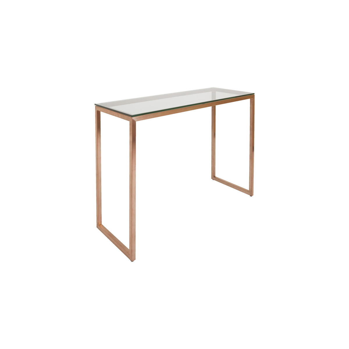 Tilda Glass Console Table With Copper Base, Clear Glass And Copper