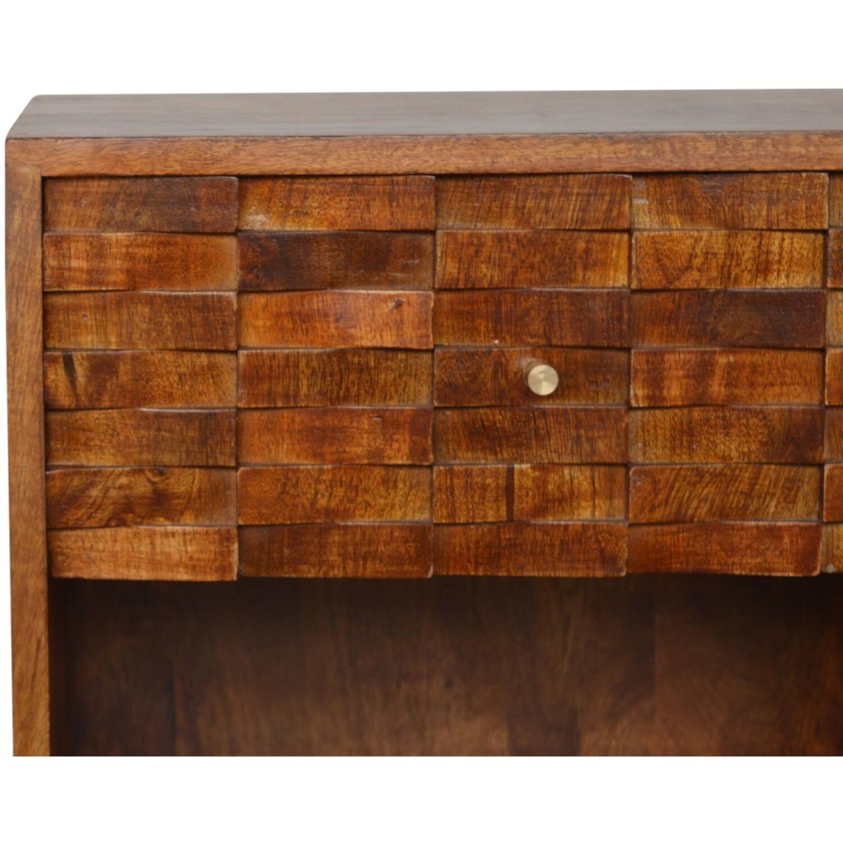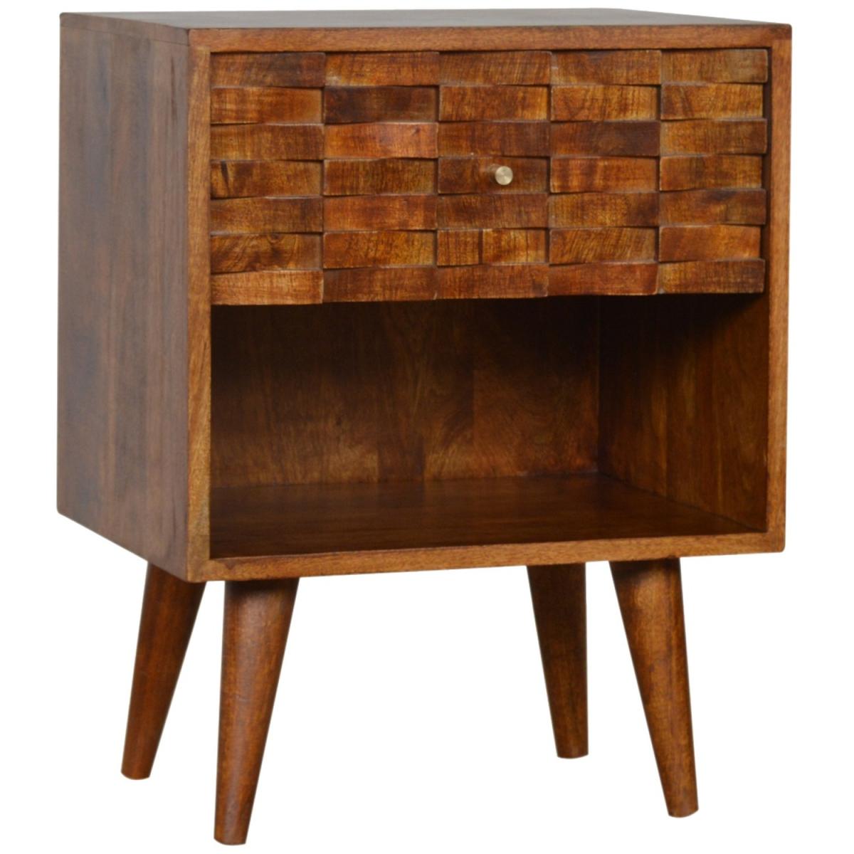 Tile Carved Chestnut One Drawer Bedside Table With Open Slot - Brown