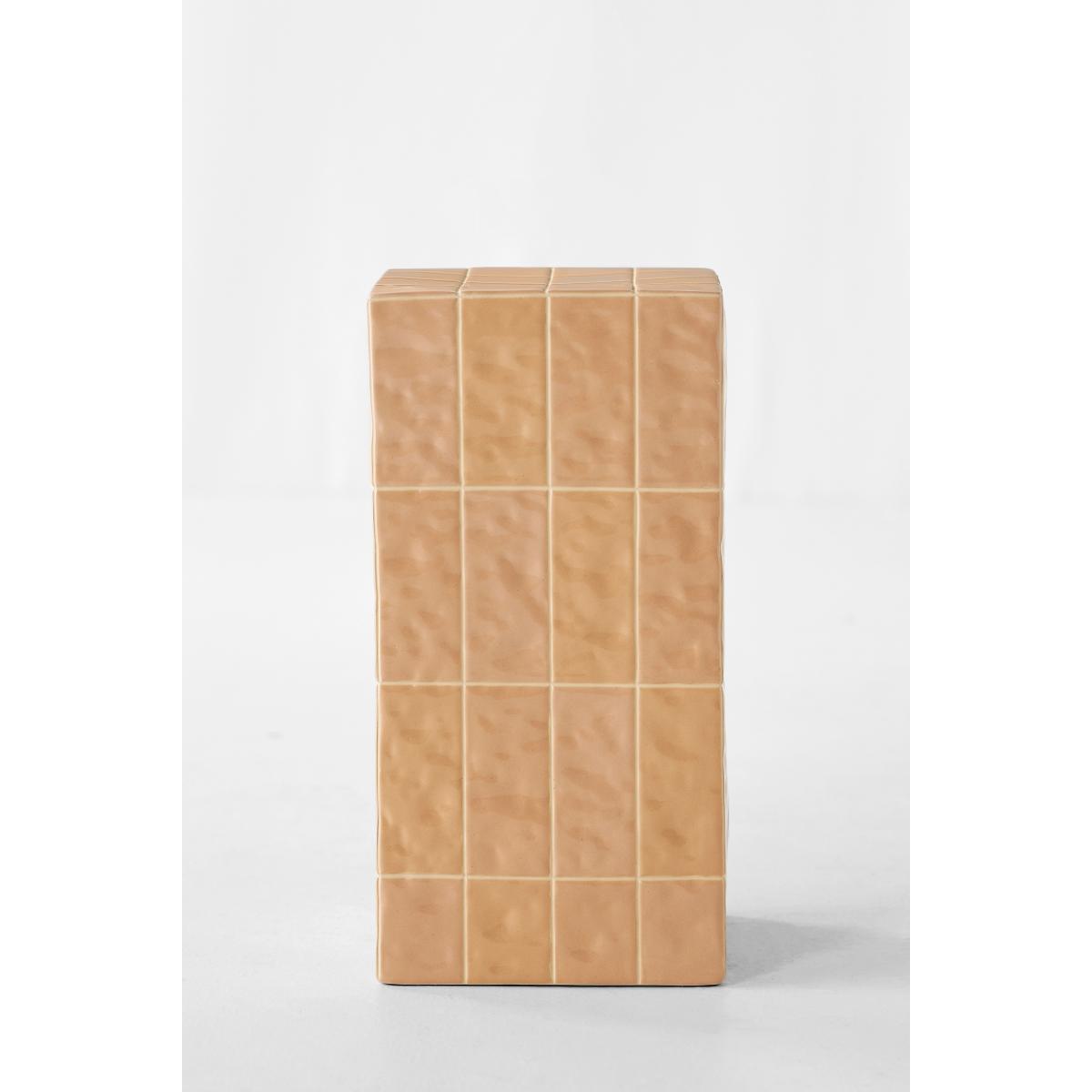 I love this tile side table for its versatile, contemporary look that instantly adds texture and interest to any space. Its ceramic finish makes it a practical choice for both indoor and outdoor settings, especially near pools or patio areas, where durability and easy cleaning are key. It works well in modern or minimalist interiors, adding a subtle pop of colour and pattern without overwhelming the design. Practical styling tips include using it as a statement piece with decorative objects like bold vases or lanterns, or pairing it with natural textiles and greenery for a relaxed, coastal vibe. Its sturdy construction means you can also use it to hold drinks, books, or even small plants, making it both functional and stylish.