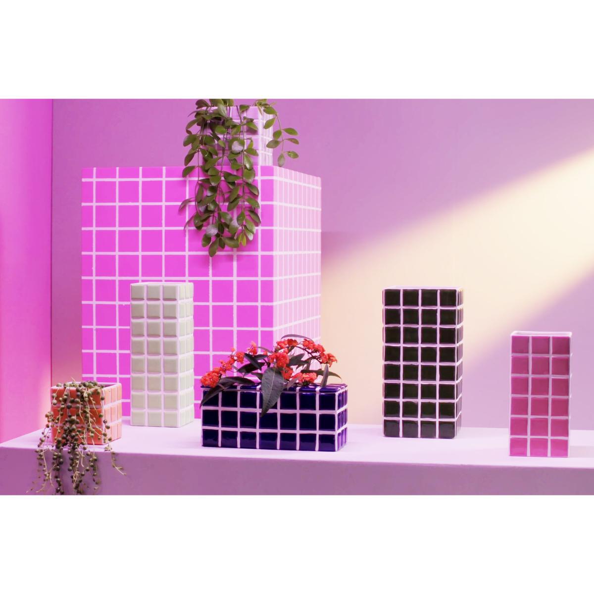 Mosaic trend… An ultra-graphic effect for these joyful, colourful flowerpots, made up of small ceramic squares assembled by white joints. This raised texture is fun and very tactile. Tile pots come in a superb palette of vibrant, delicious colours. They are multi-functional and can be used as flower-pots (for small cacti or plants), pencil pots, and can also hold kitchen utensils, cotton buds in the bathroom, or office accessories.