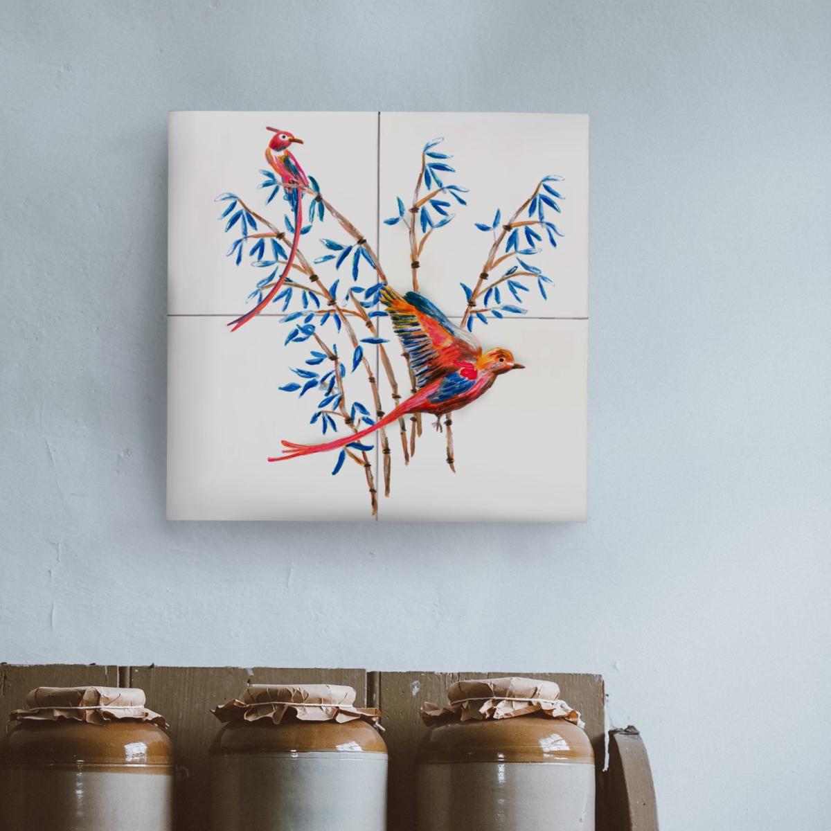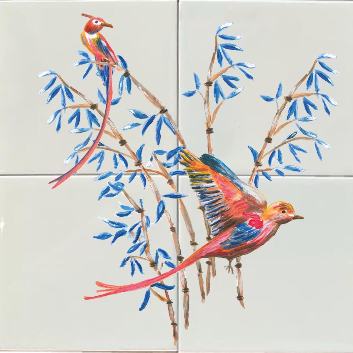Colorful tile panels to love! Original handcrafted Dutch tile panels from Catchii. Dutch designer of Catchii, Femke, has illustrated several modern designs of tile panels to decorate your home. The porcelain tiles are little pieces of art. Each design is originally hand-painted by Femke. The illustration of the cute birds and bamboo is elegant. Where could you add a tile panel in your interior? A tile tableau would be wonderful in your kitchen. Or just put it on a wall shelf. Mix & match to have unique wall decor at home. Add a tile panel in your bathroom. On the wall of the toilet. Add a tile panel in your kid bedroom or in the kids playroom. A tile panel as a gift for a new home or new born is also a very original idea! Catchii brings color to your home.