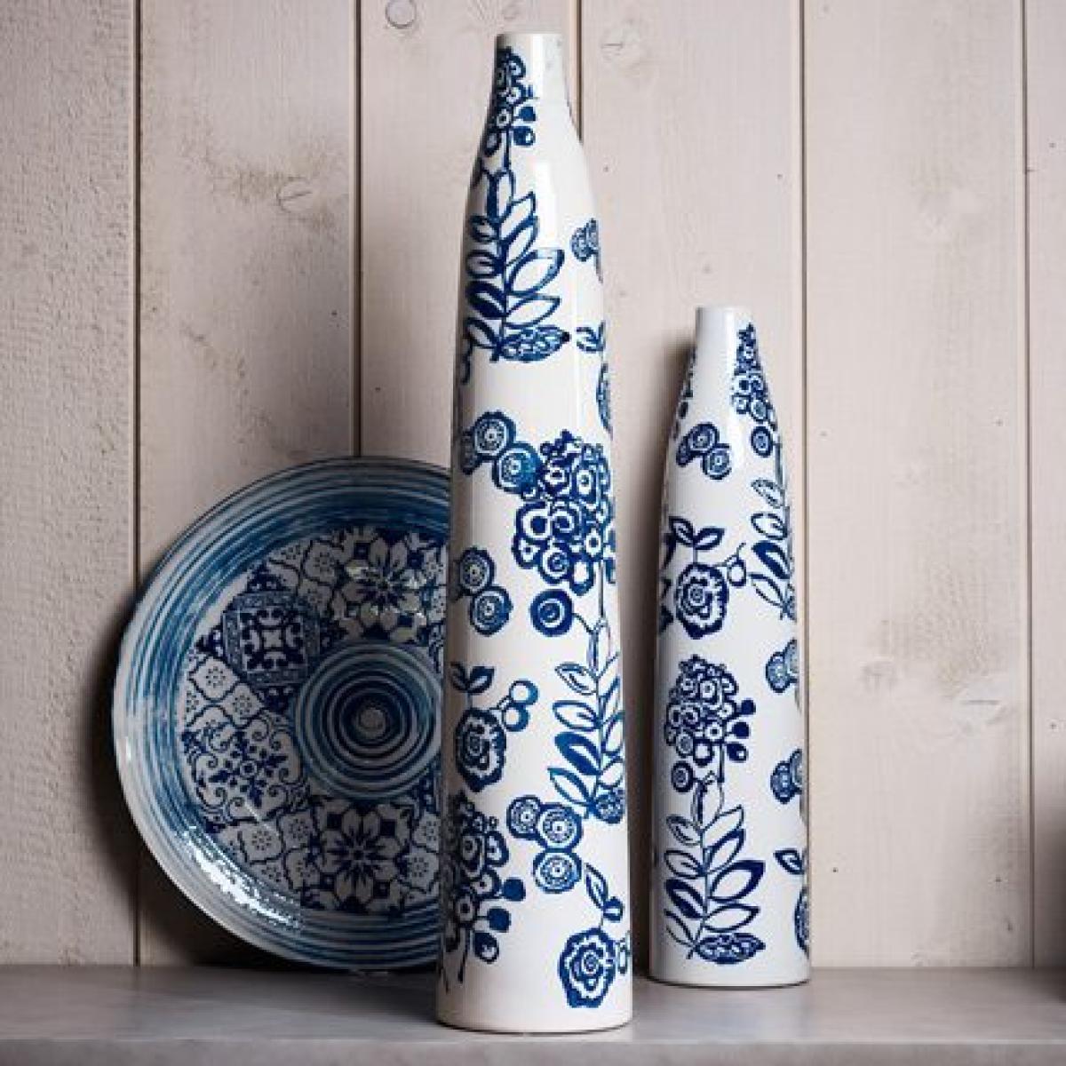 The artistic traditional design of the ceramic Tiled Slim Vase adds a splash of blue to your living or dining room. A piece that would look lovely on an oak unit holding a pale coloured stem. Explore the rest of the tiled collection for more vases, platters and jugs in a similar style. Large - Height 60cm, XL - Height 80cm. Available in 2 sizes